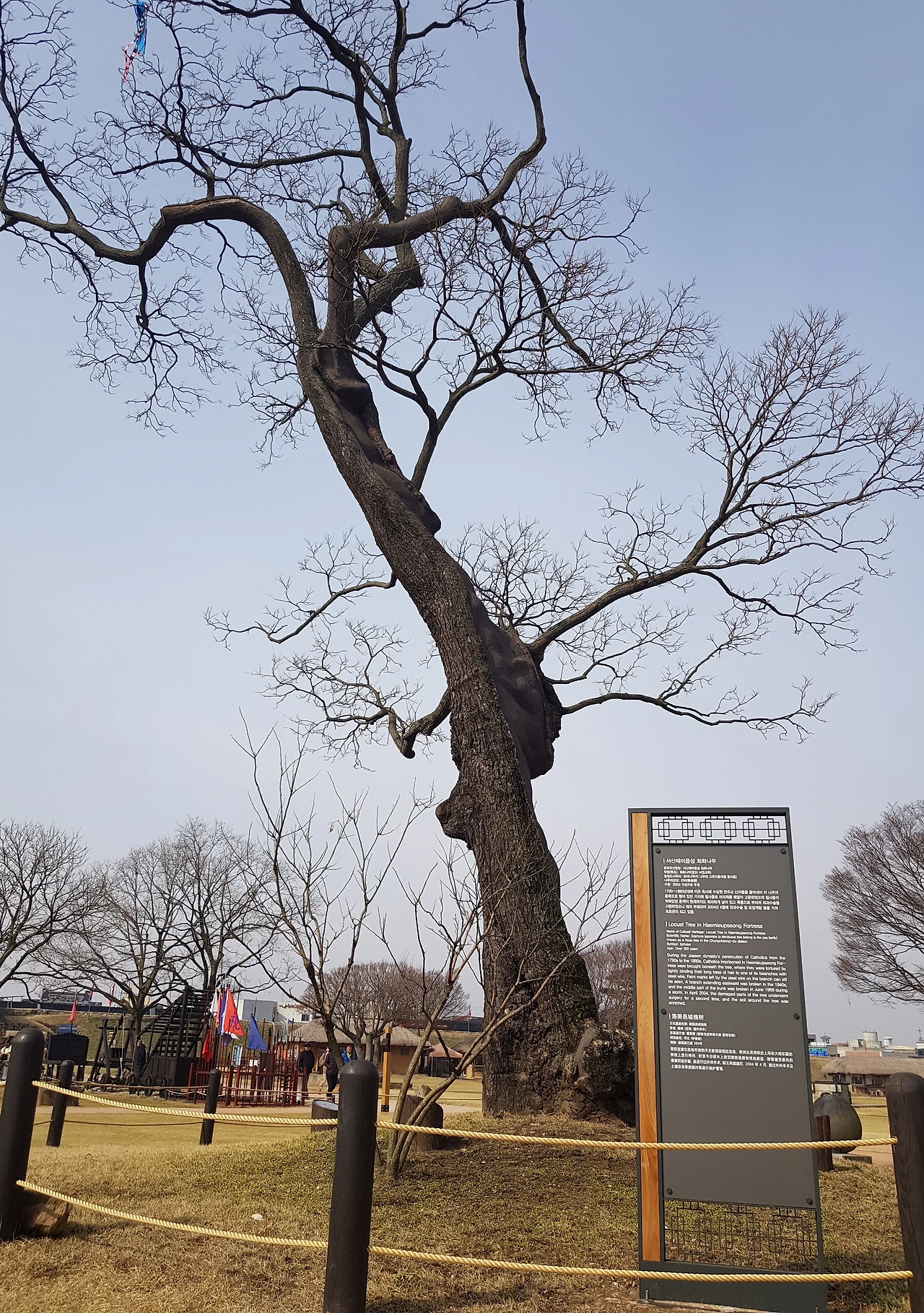 안으로 들어가니 커다란 회화나무가 보호줄 안에 있었고 그 앞에는 천주교 박해 때 이 회화나무에 철사로 목을 묶어 나무에 매달아 죽였다는 설명도 쓰여있었다