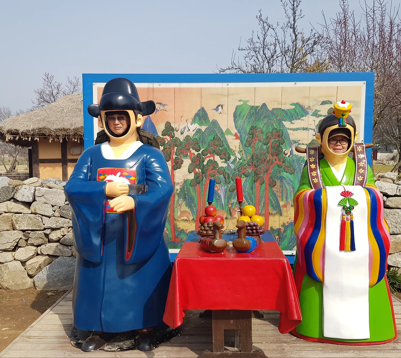 읍성은 관아와 일반 백성들이 살아가는 곳 초가에는 초례청을 차려두고 기념사진을 찍도록 해 두어서 외국 여행객의 사진을 찍어주니 무척 기뻐하며 우리도 찍어 주었다