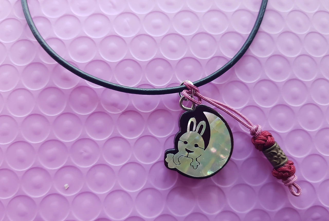 여행 중 나전칠기공예점에 들러 토끼자개가 예쁘고 앙증스러운 작은 목걸이 하나를 골랐다