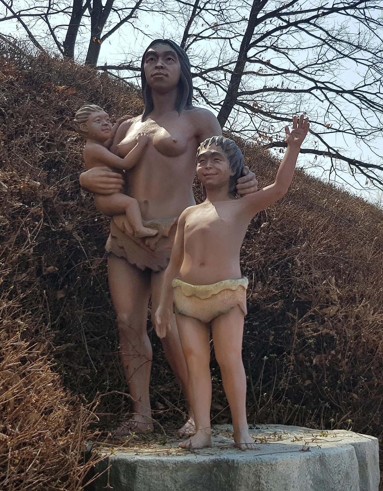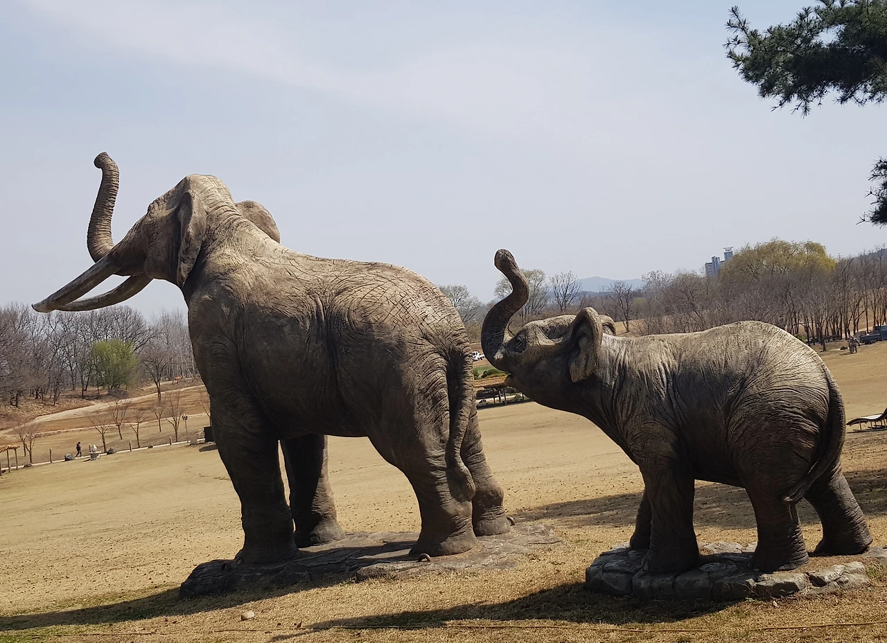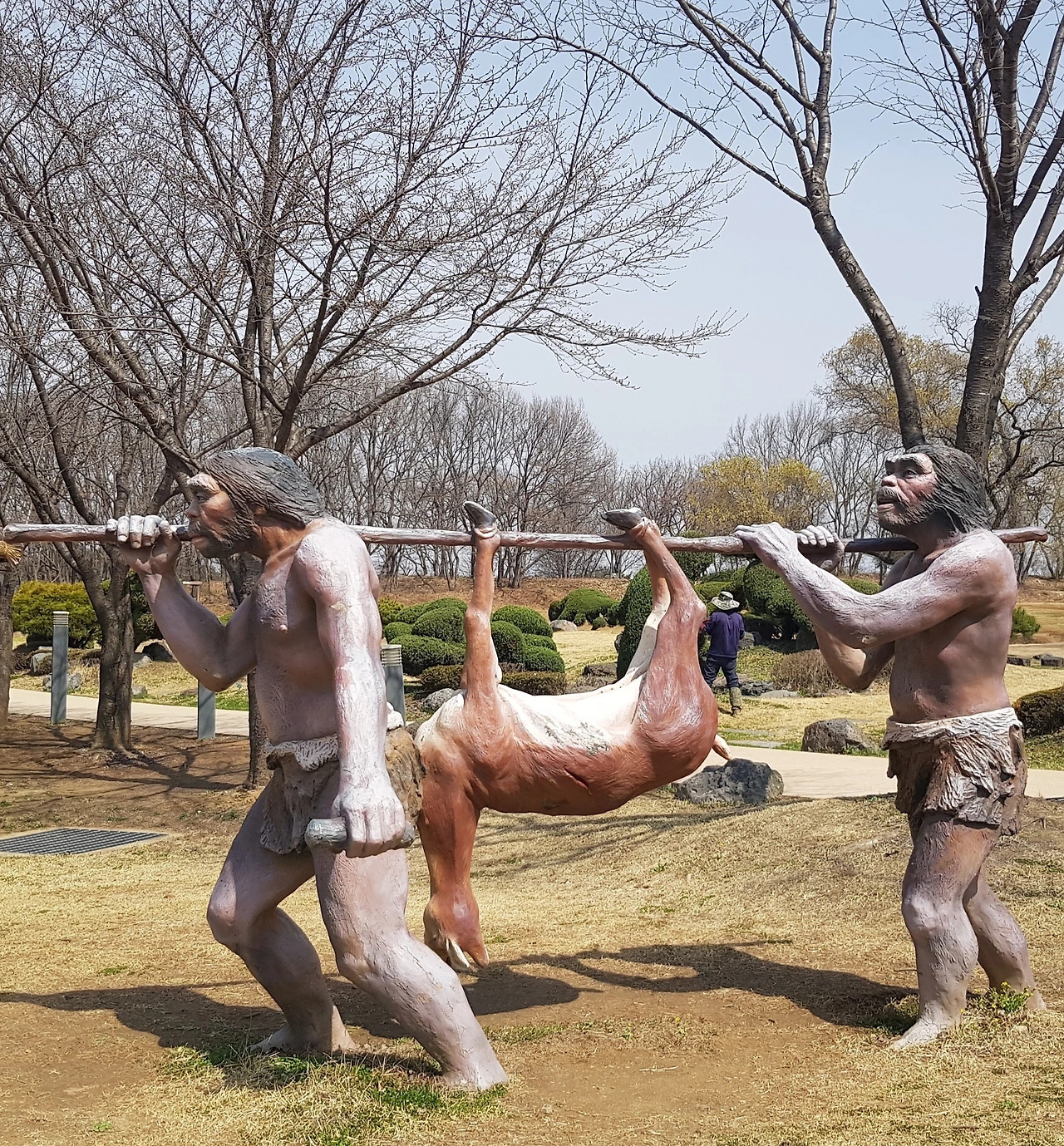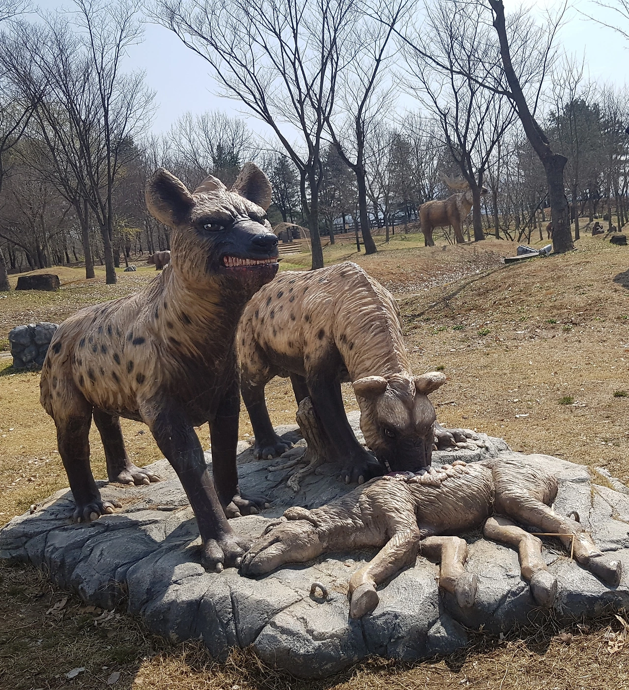 선사시대의 모습들을 가장한 작품들이 여기저기 동물의 모습으로, 원시인의 모습으로 마치 선사시대의 살아있는 자연을