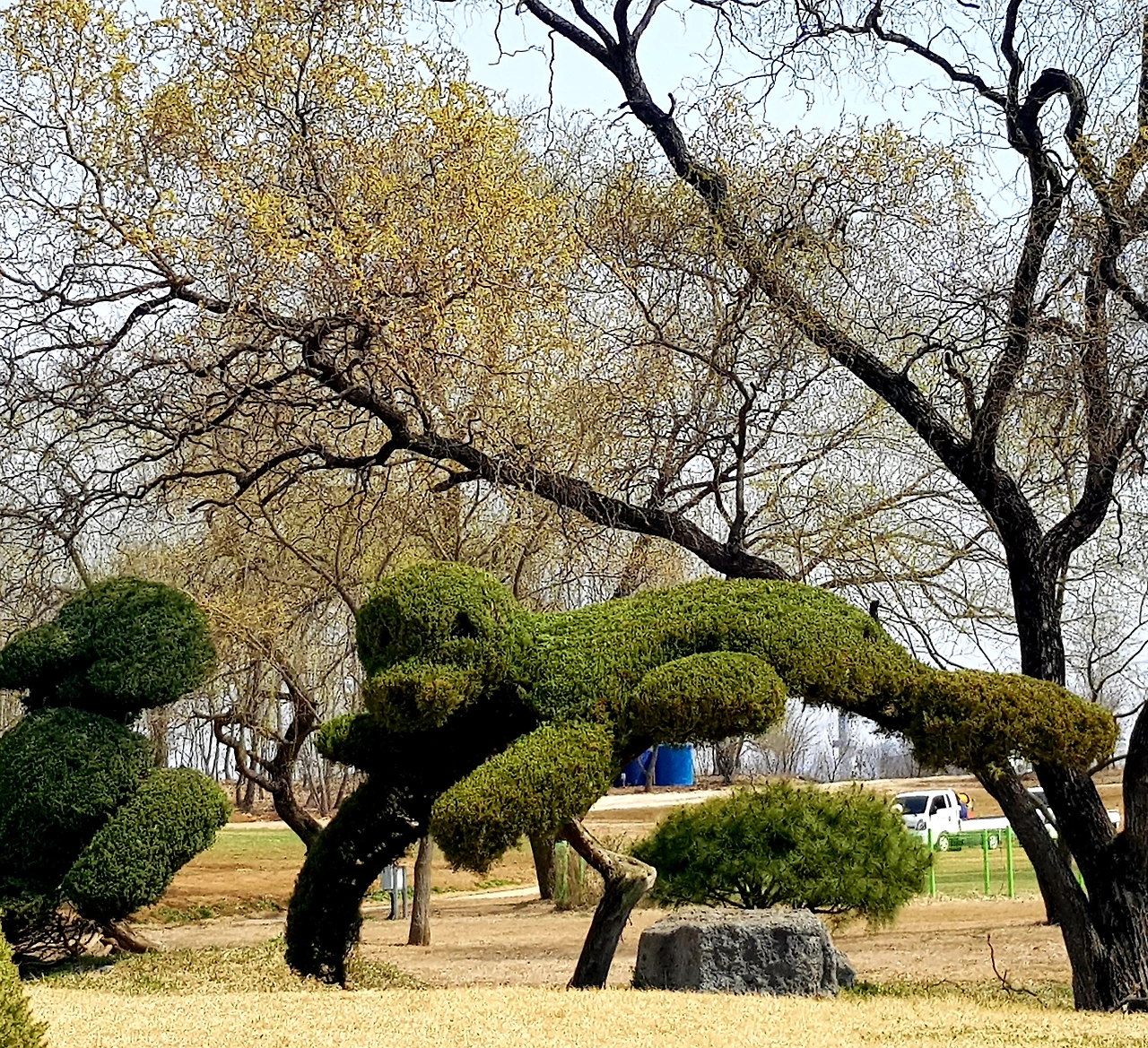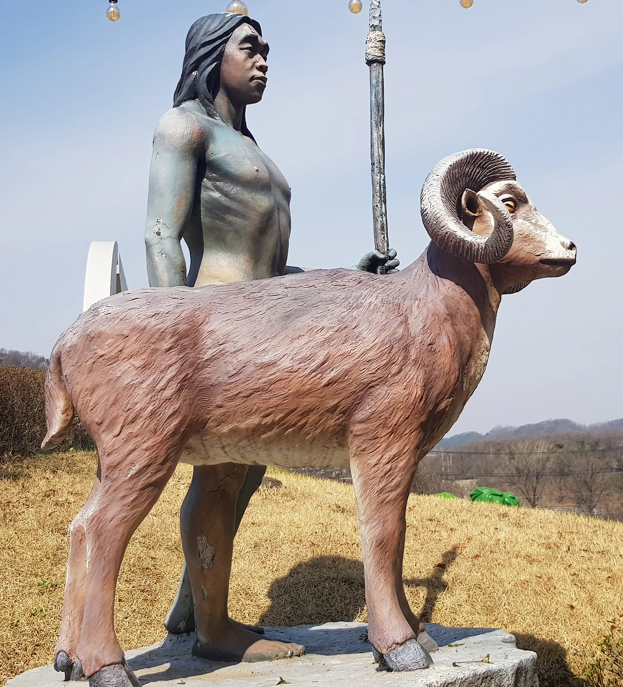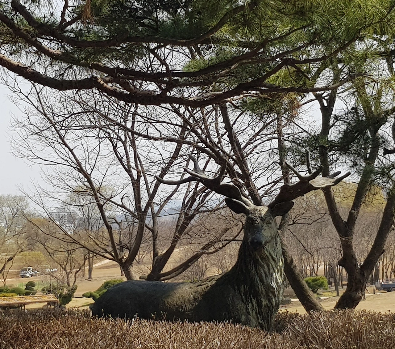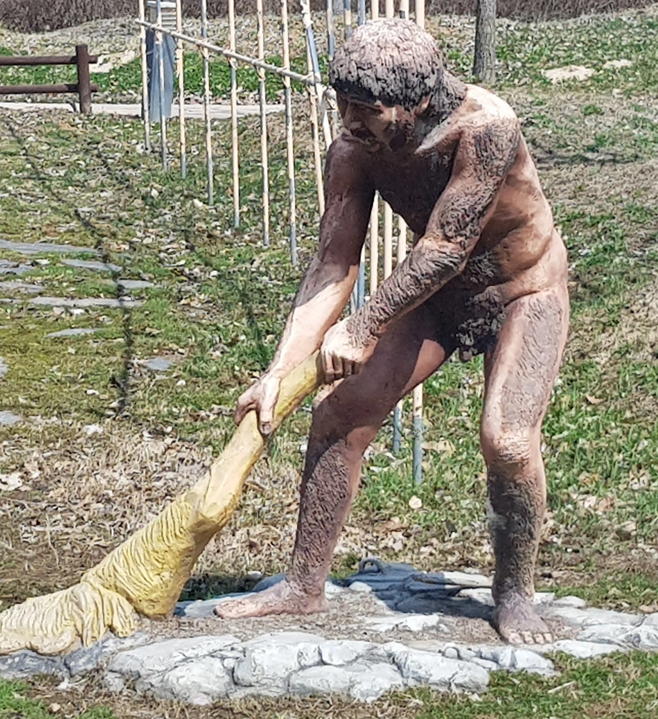 선사시대의 모습들을 가장한 작품들이 여기저기 동물의 모습으로, 원시인의 모습으로 마치 선사시대의 살아있는 자연을