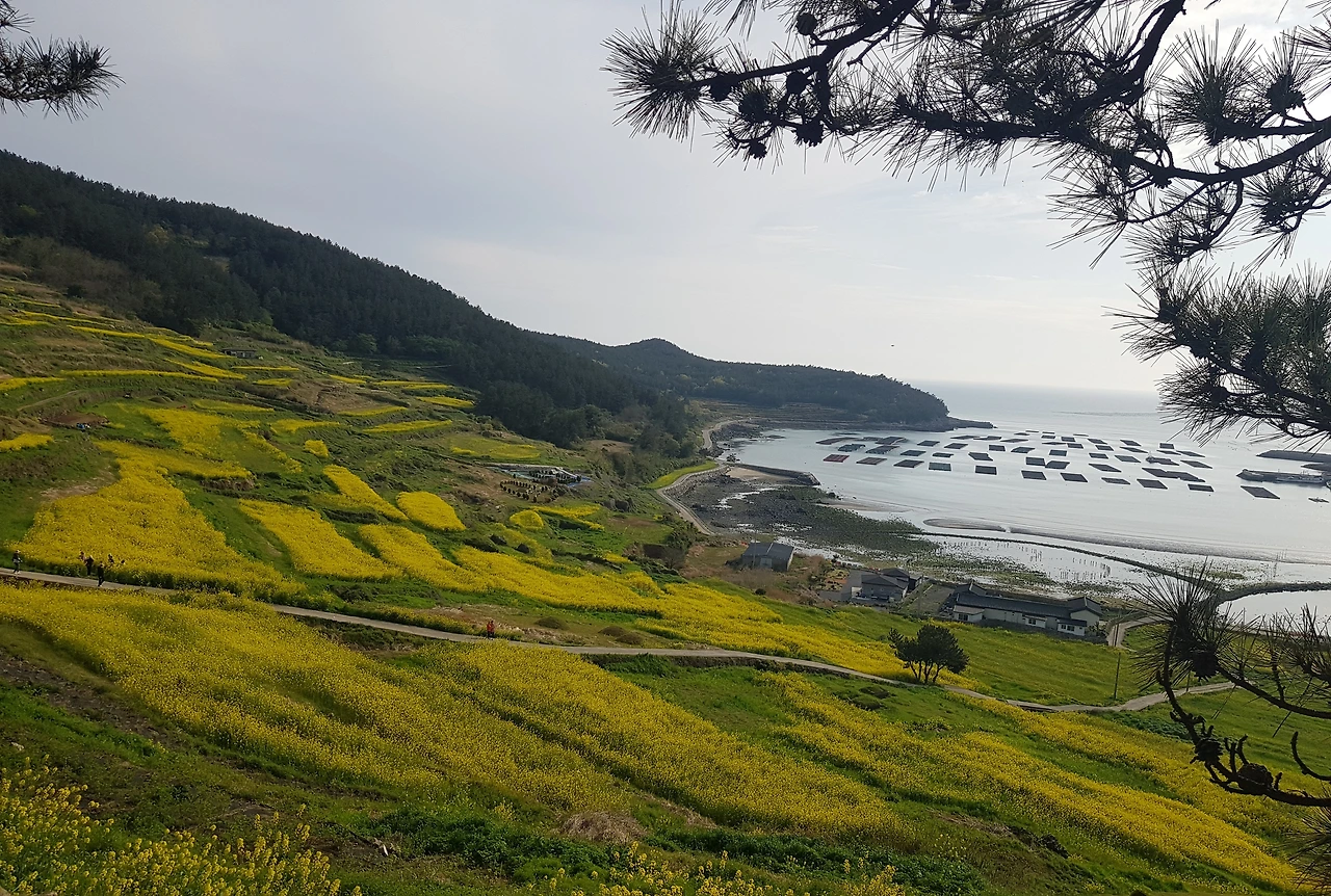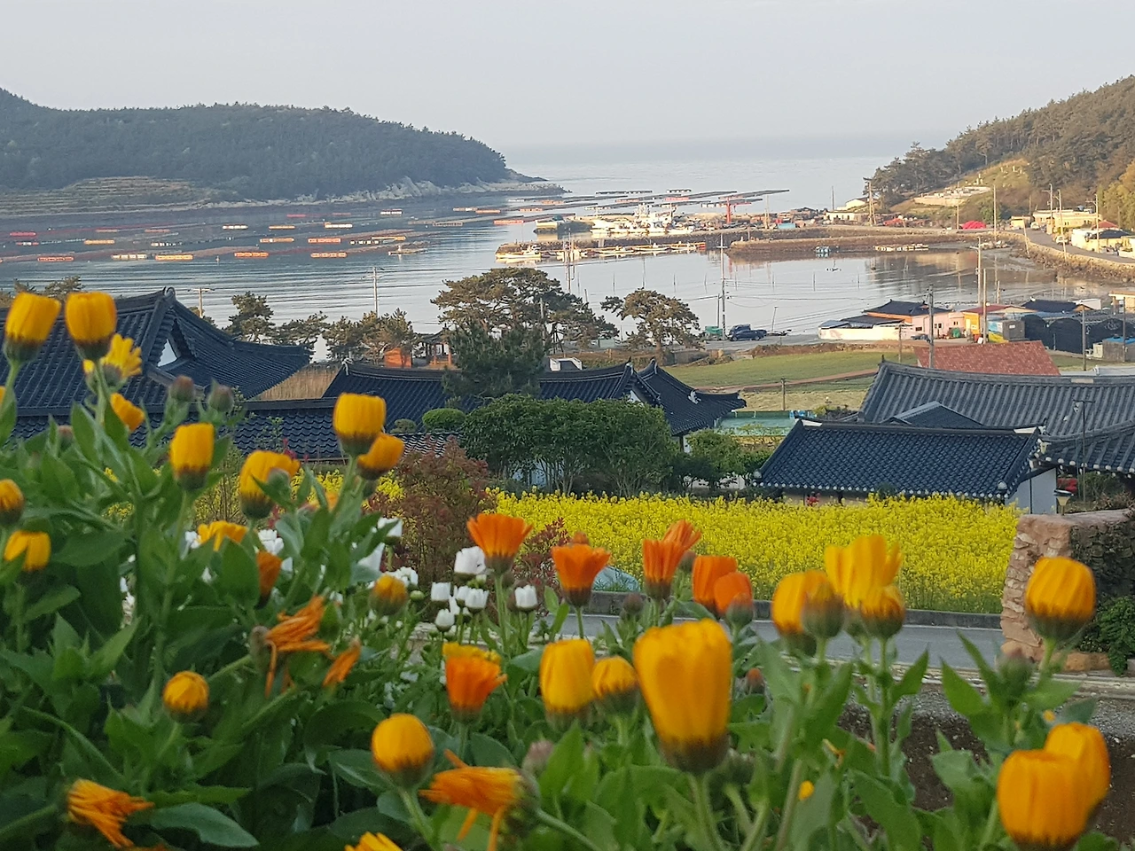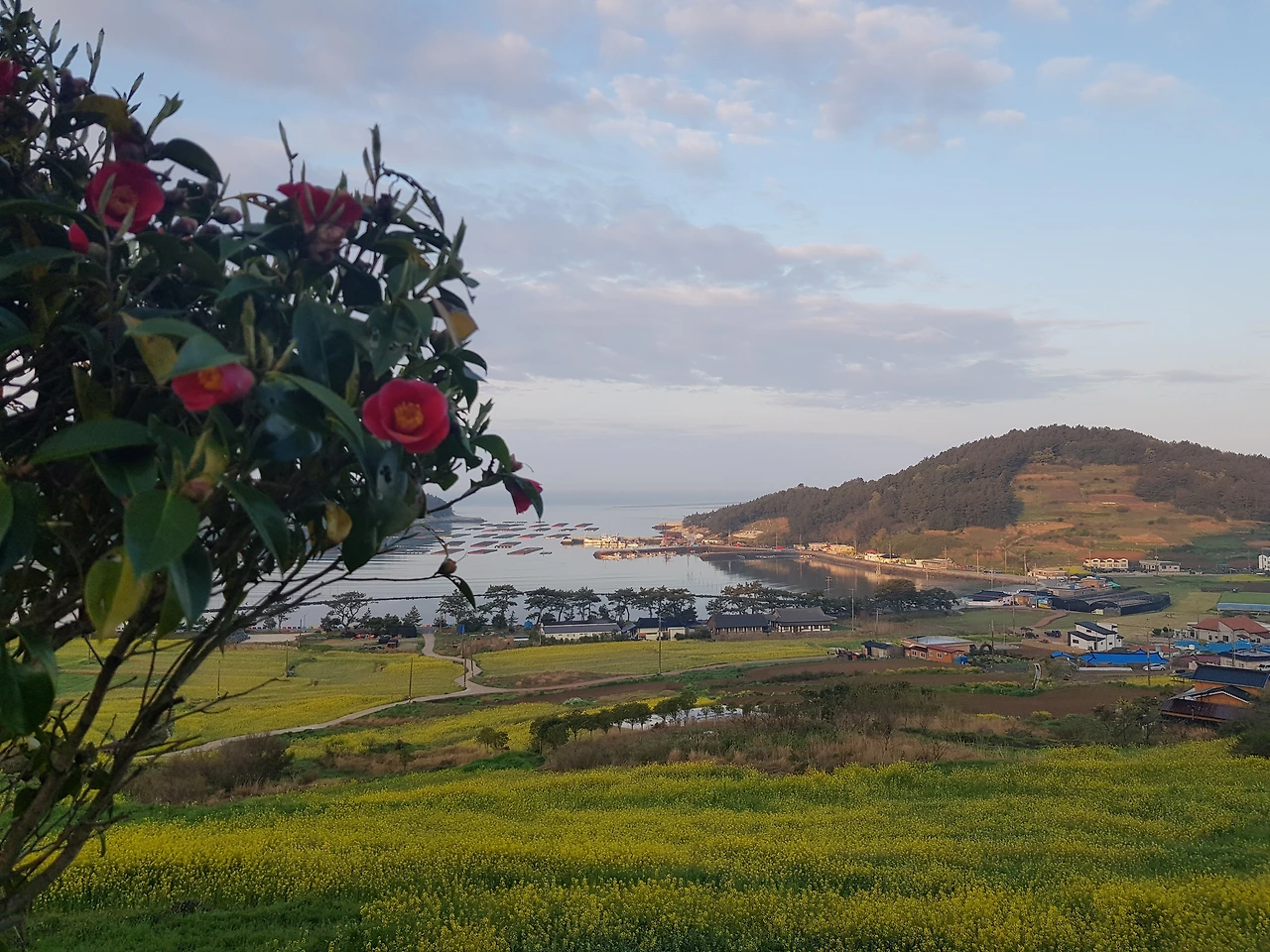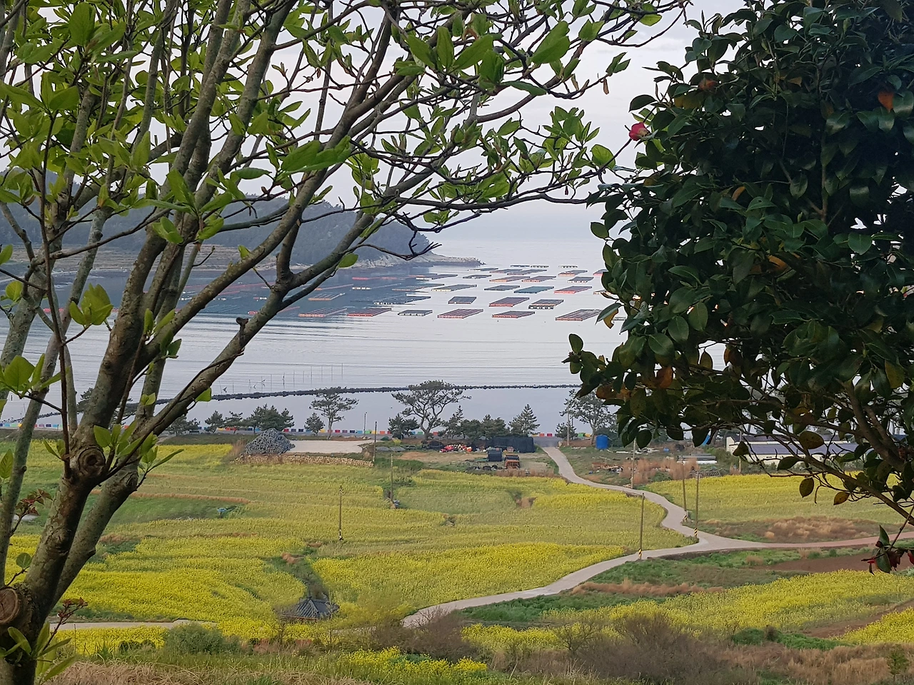 새벽의 산책을 마치고 돌아온 숙소마당에서 내려다본 청산도의 이른아침 풍경에 짝꿍과 이 아름다움을 함께 보지 못하는 아쉬움에 전화기를 든다