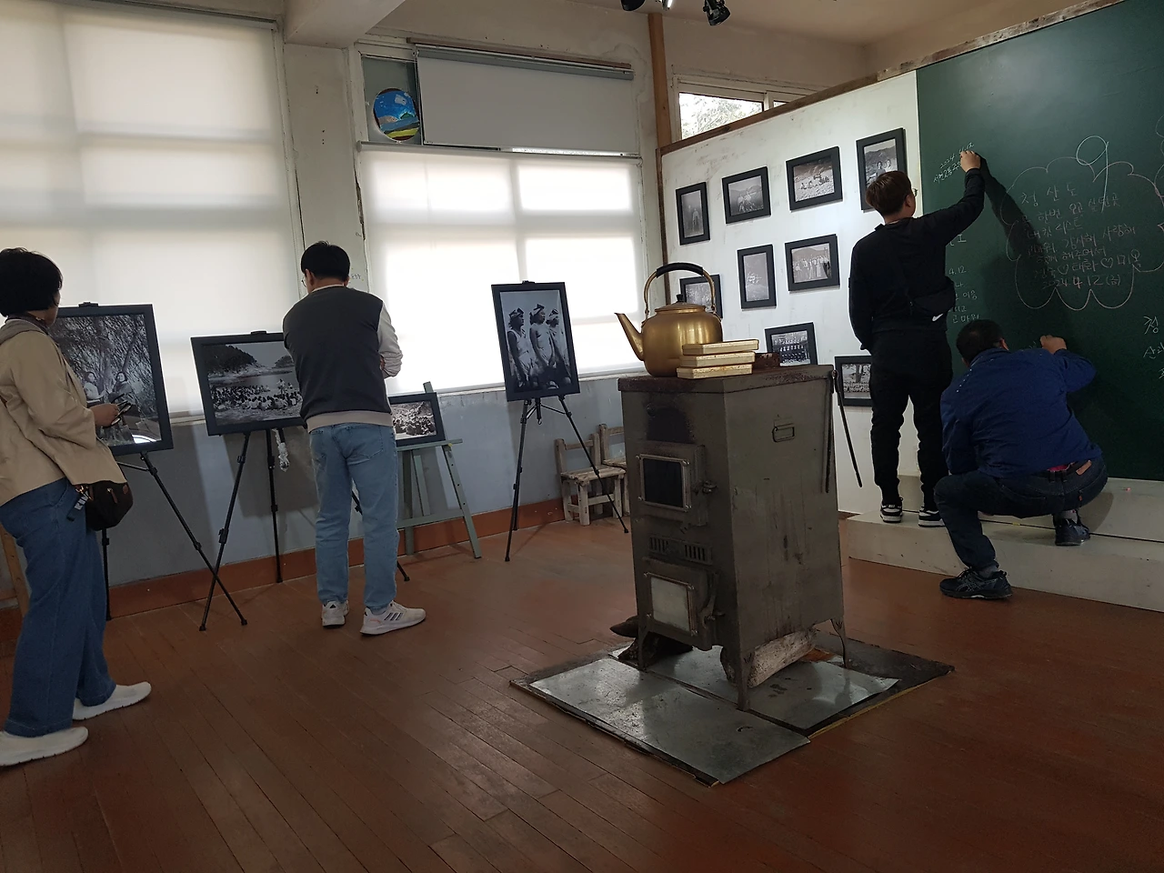오래 묶은 국산 국민학교 교실 안에는 동네사람들의 사진과 난로 위 도시락과 노란 양은 주전자가 추억을 끌어내오고 이 교실을 유지하기 위해 이곳 주민자치위원들이 수고하고 있다는 찬사도 잊지 않는다