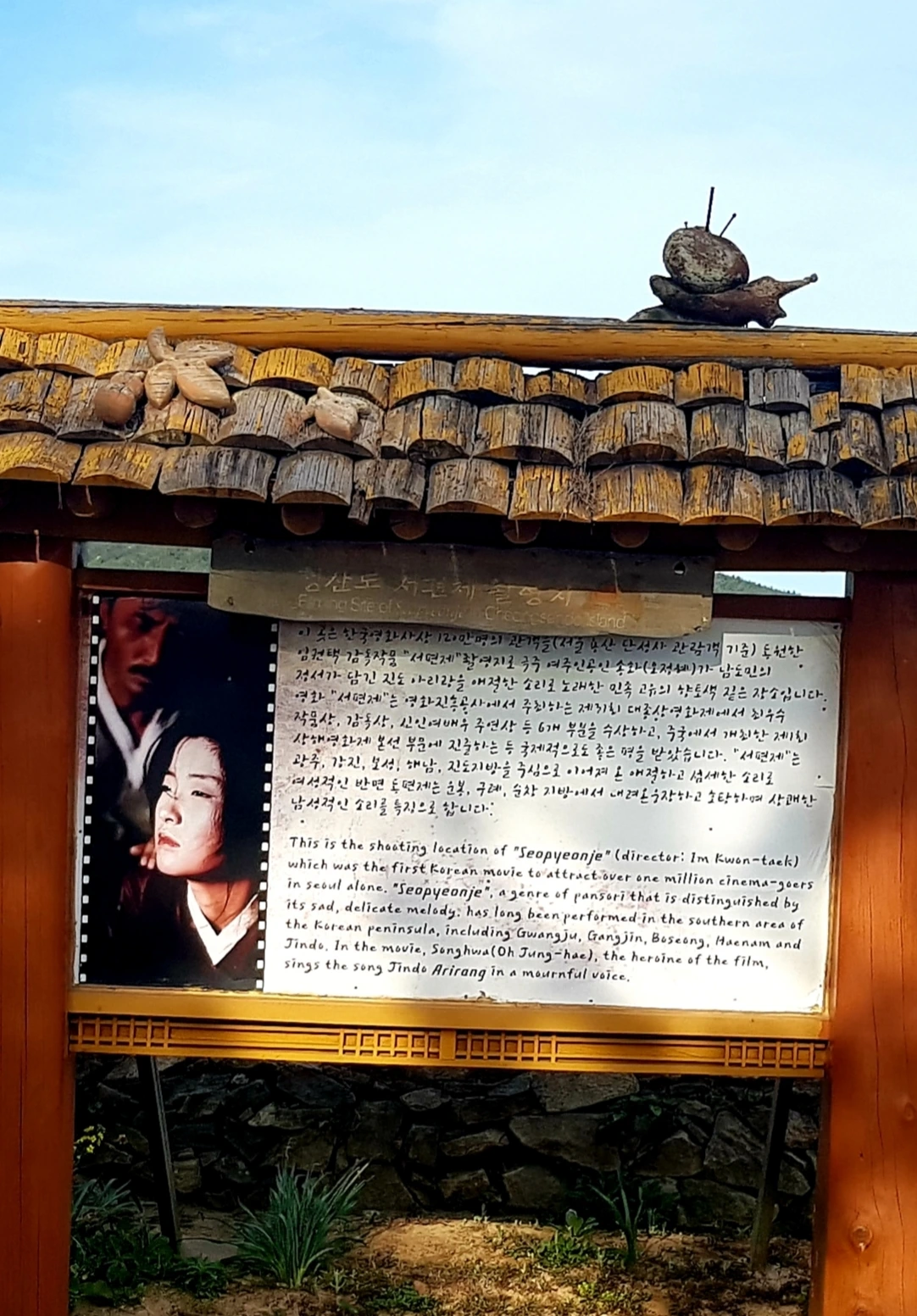 유채꽃이 흐드러진 그 길에는 서편제의 촬영지임을 알리는 오정해의 영화 속 창이 끊임없이 흘러나오고 있었고 영화의 장면들이 소개되는 게시판이 있었다