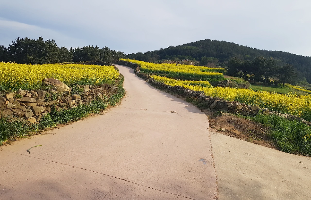 서편제를 촬영했던 똑같은 그 길에는 그때는 수확이 끝난 빈밭이었고 지금은 유채꽃이 흐드러진 유체밭이라는 다름이 있었지만 같은 길임을 영화의 한 장면으로 확인되었다
