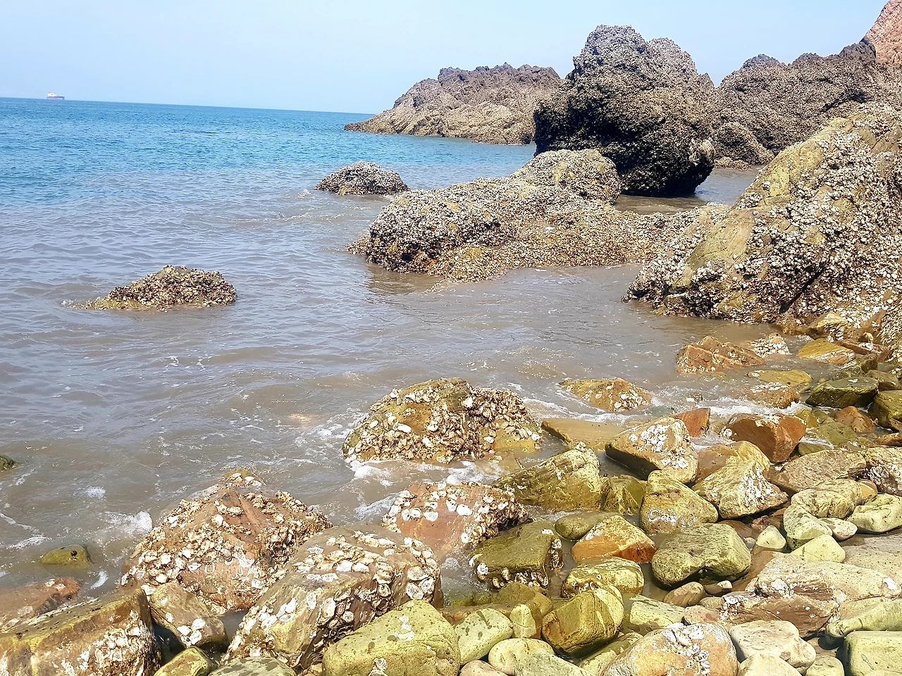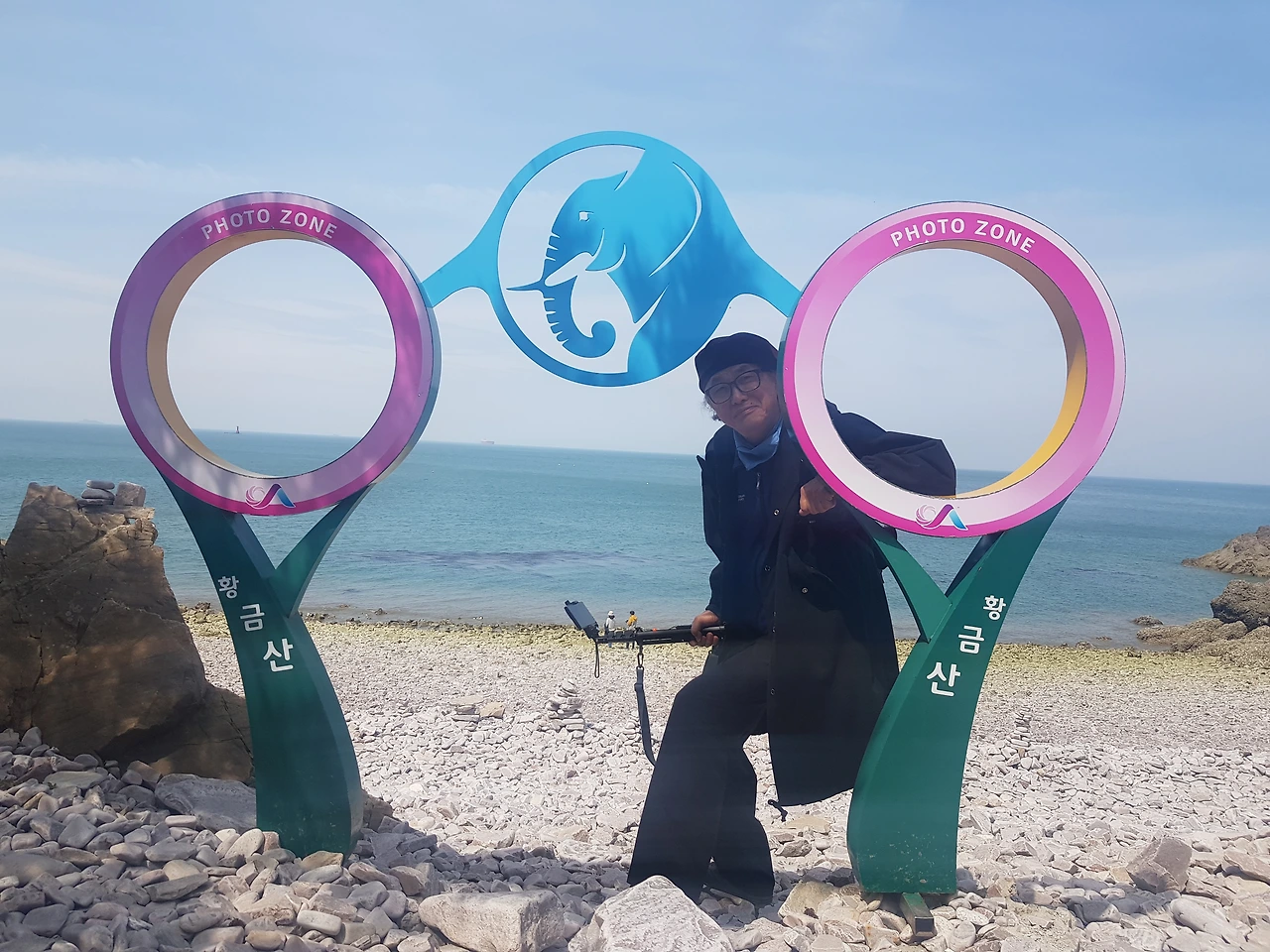 입구 쪽에 황금산 코끼리바위를 알리는 설치물에서 사진도 찍고 발을 옮길 때마다 박자를 맞추는 돌들의 노랫소리와 조금씩 밀물이 되어 들어오며 외치는 파도소리를 들으며 코끼리 바위를 만났다