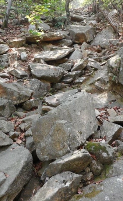 행여 발이라도 잘못 디뎌 미끄러지거나 넘어지면 크게 다칠 듯 한 돌들이 제멋대로 늘어서 있었고 어느 구간에는 깨진 돌들이 날카롭게 서 있어 더더욱 조심할 수밖에 없었다