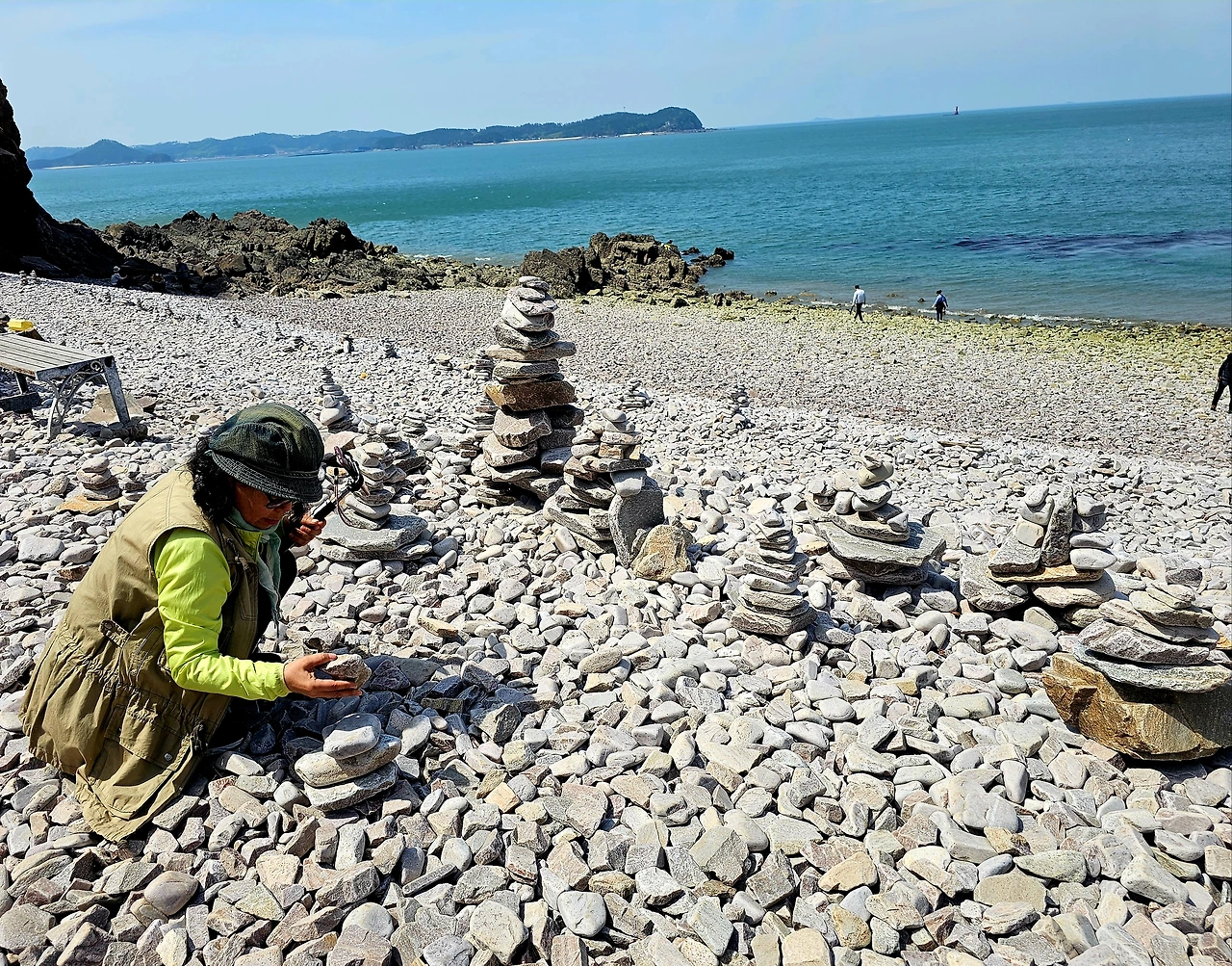 수억 년 비바람과 파도에 씻겨 부드러운 돌멩이가 되어있는 몽돌 위에 앉아 나도 이갑룡 처사가 되어 돌탑을 쌓았다