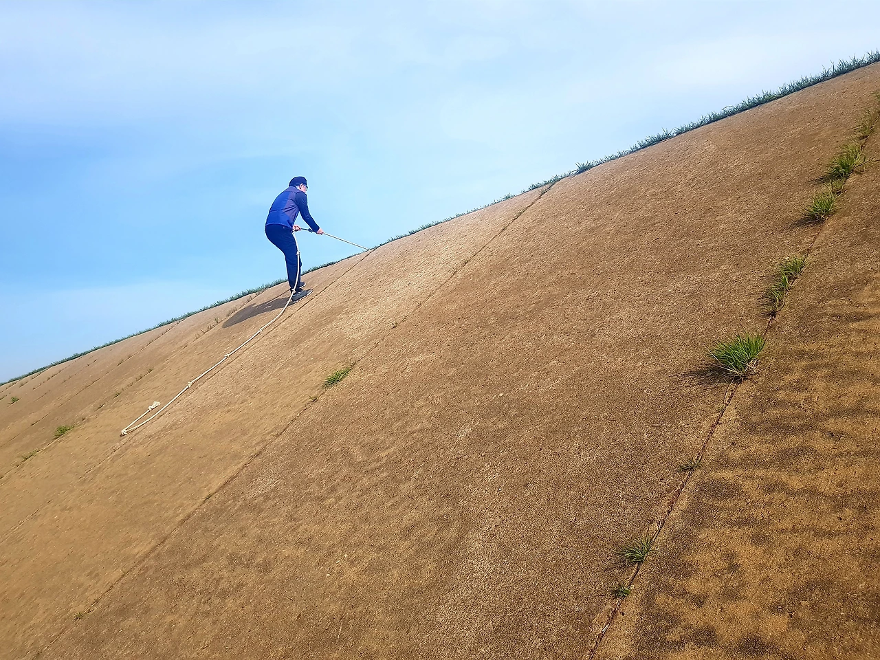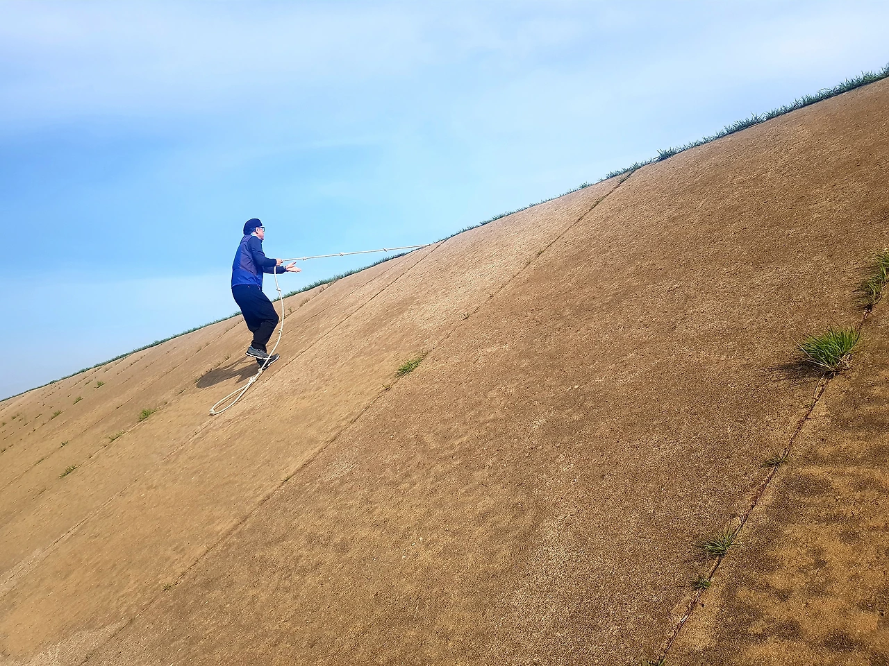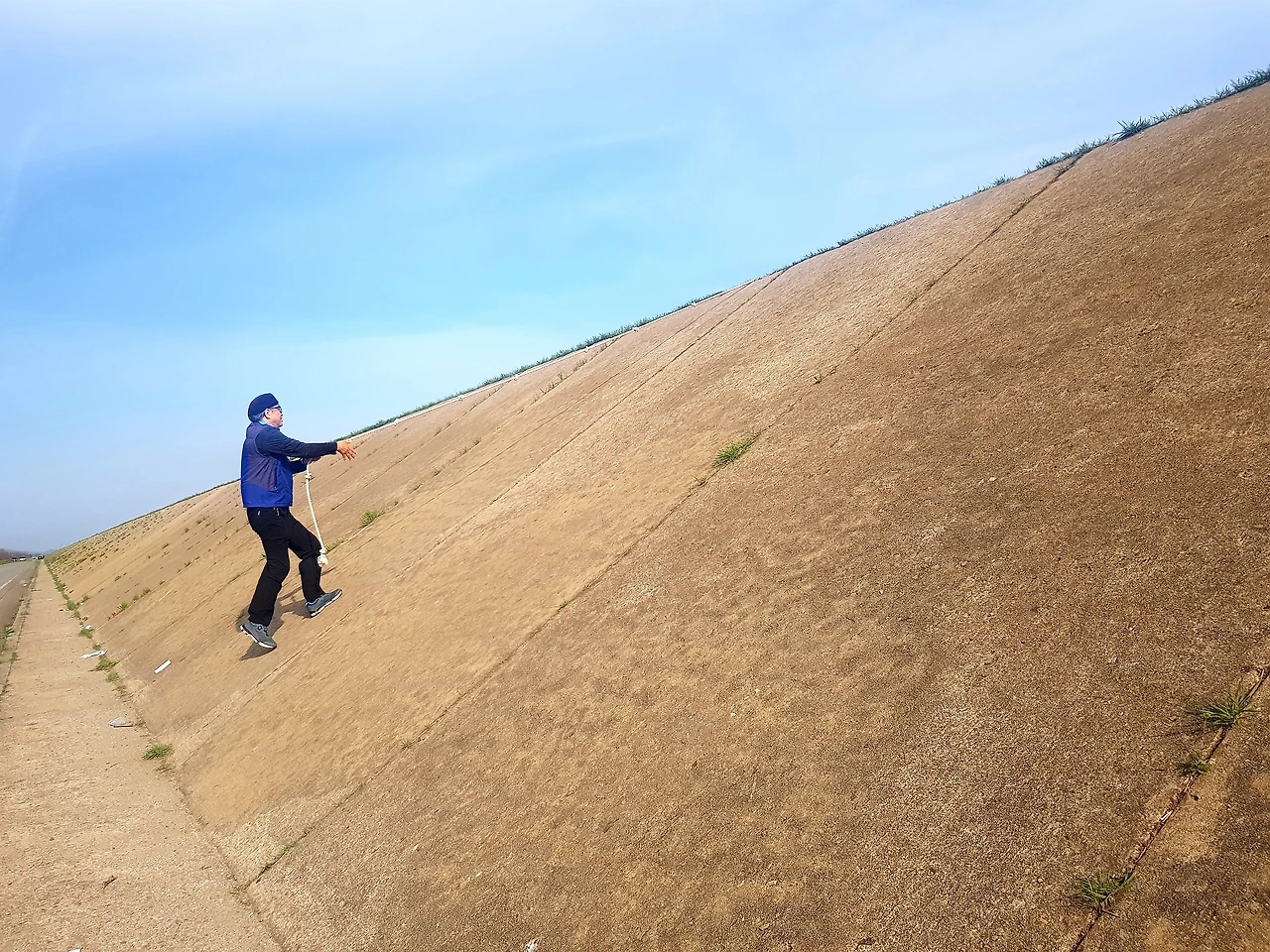 로프에 의지해 짝꿍이 오르던 것처럼 방조제를 오르기 시작했다