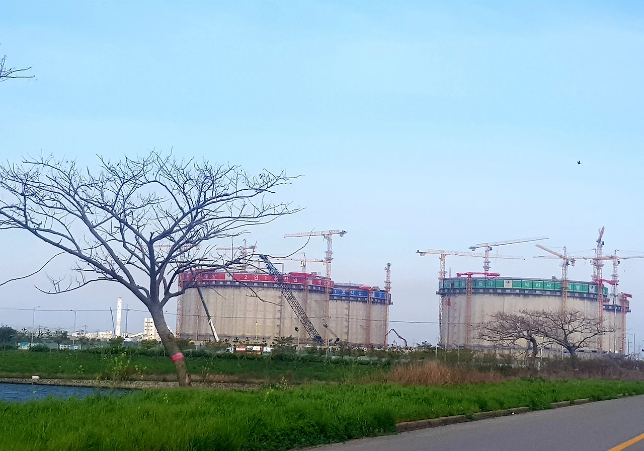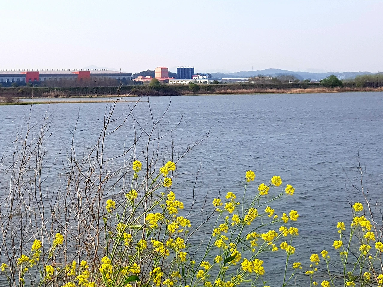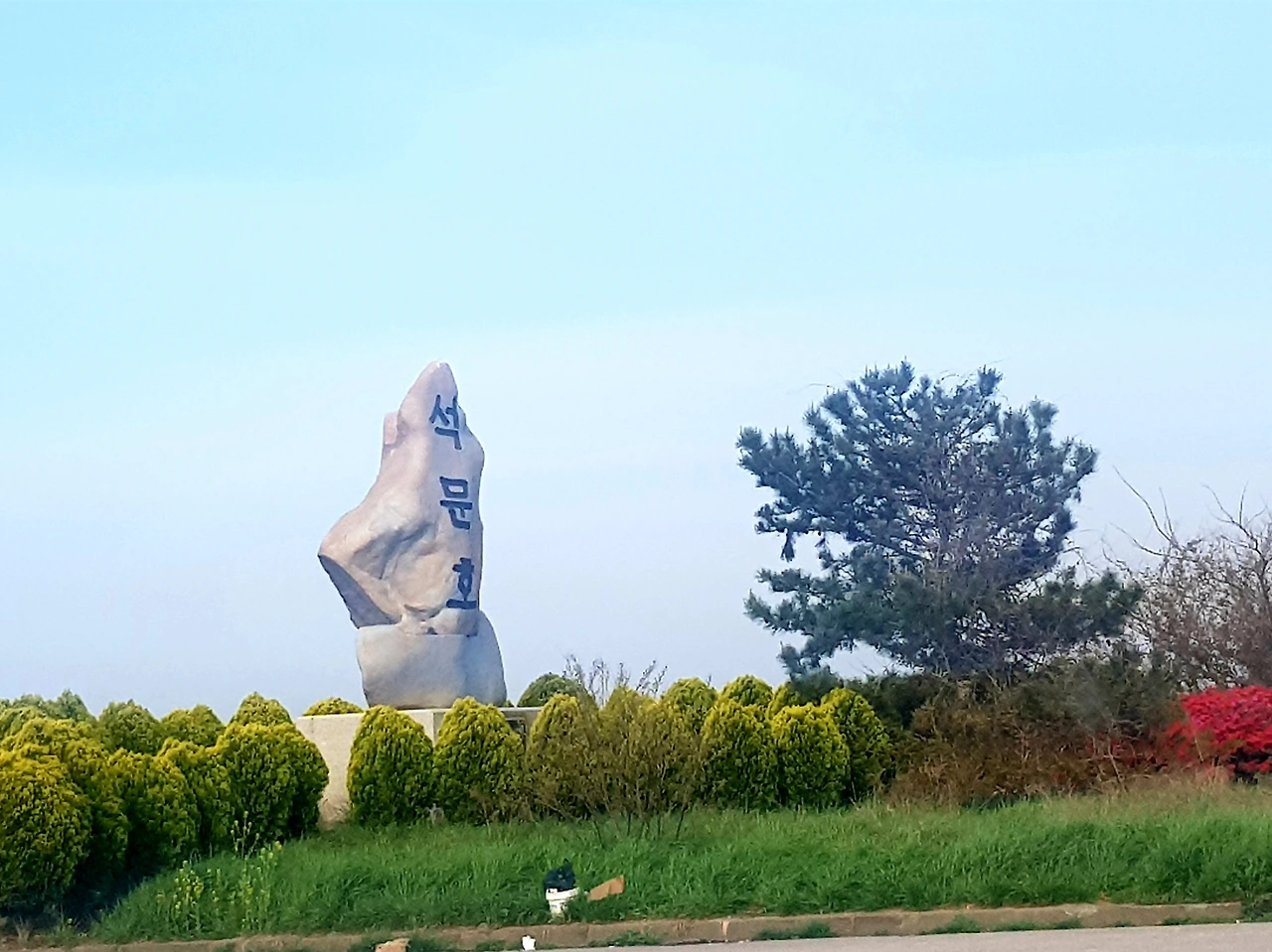 쭉 ㅡ뻗은 길은 끝없이 달려도 될 것 같은 착각에 빠지기도 하는데 그 생각을 돌이키게 하는 석문 호숫가의 조형물들과 석문 산단의 산업시설들이 이곳이 끝이 있는 길이라고 알리고 있었다