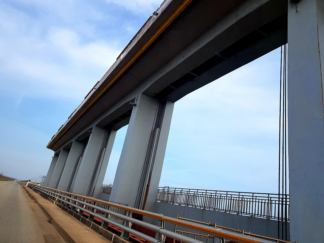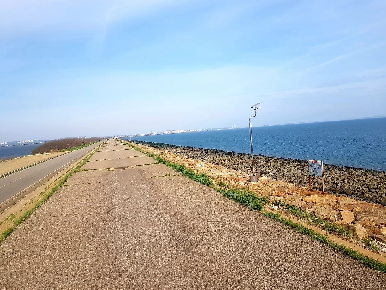 당진 석문호 곁의 석문 방조제 길을 달린다