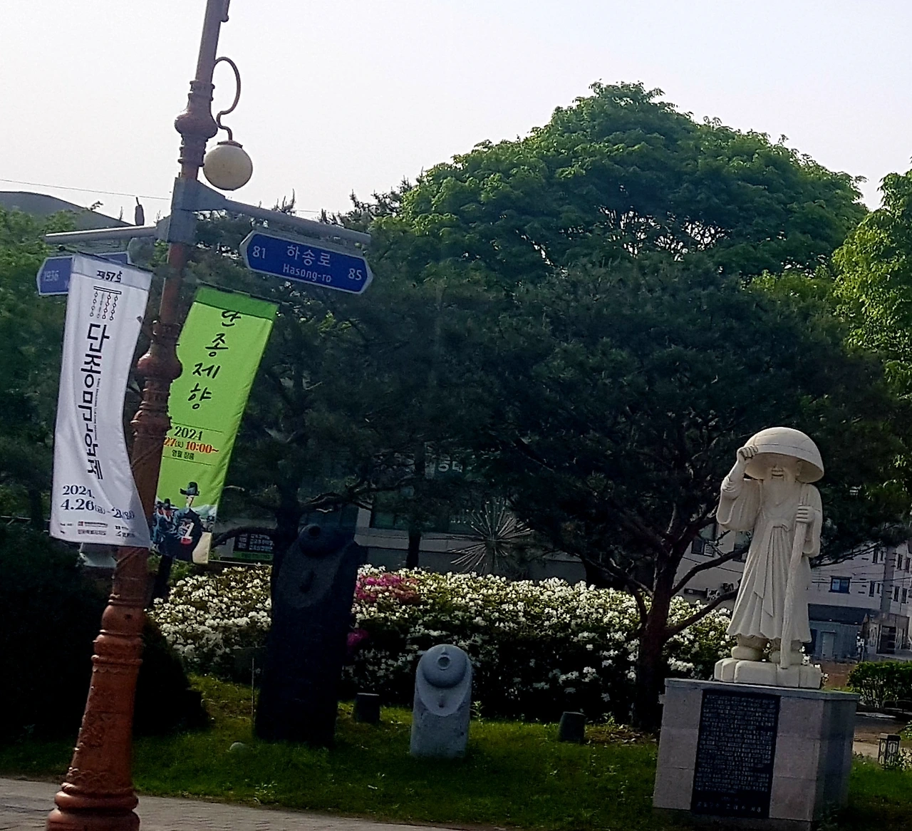 조금 더 지나자 단종문화제 현수막이 펄럭이며 김삿갓 동상이 반긴다