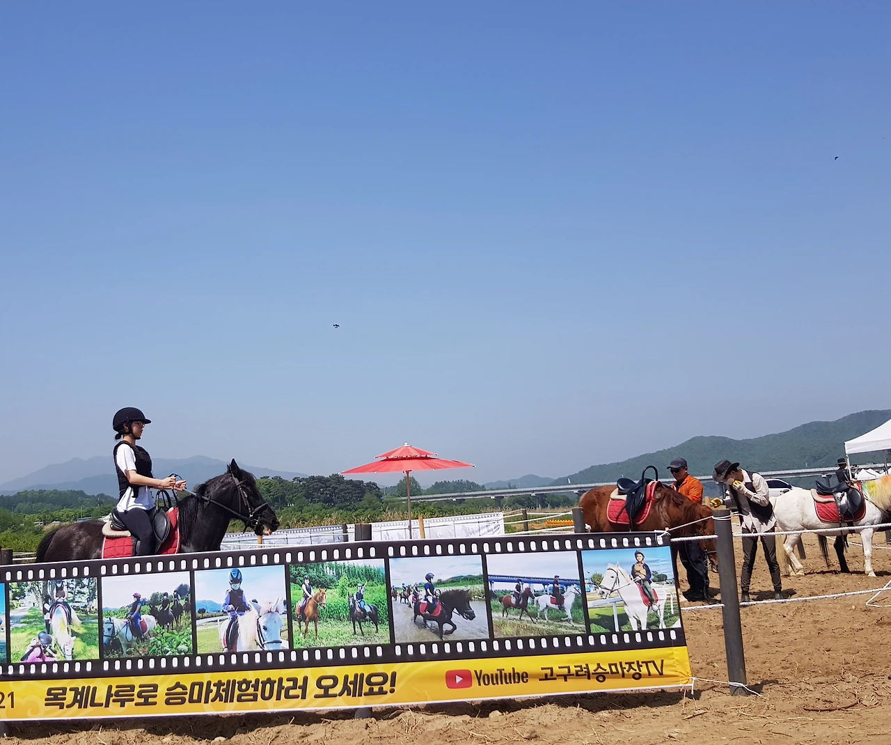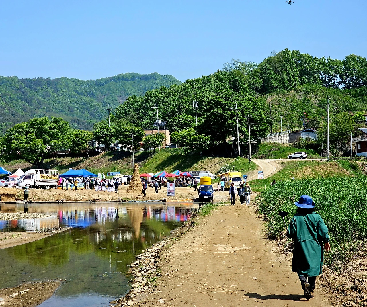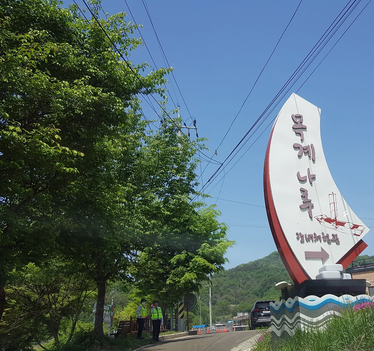 나루터 가까이에 축제의 여행객을 위한 강원도 말로 꼭지 가리가 있었다