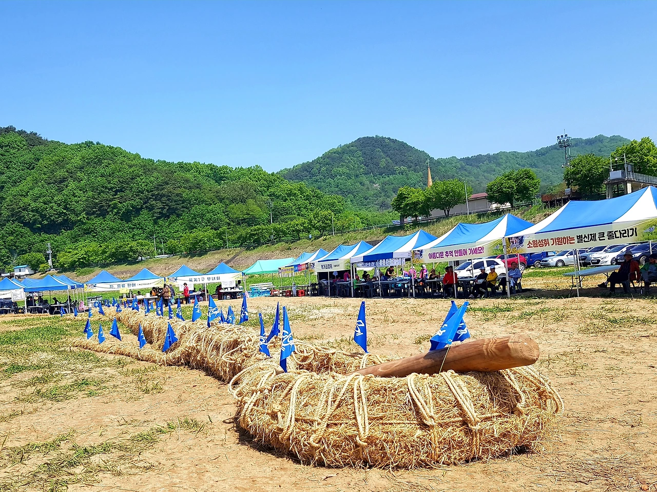 운동장 가운데에는 엄청난 크기의 고싸움놀이를 위한 고가 양쪽으로 길게 늘어지고 주변으로는 각 새마을 부녀회의 먹거리 장터가 있었다