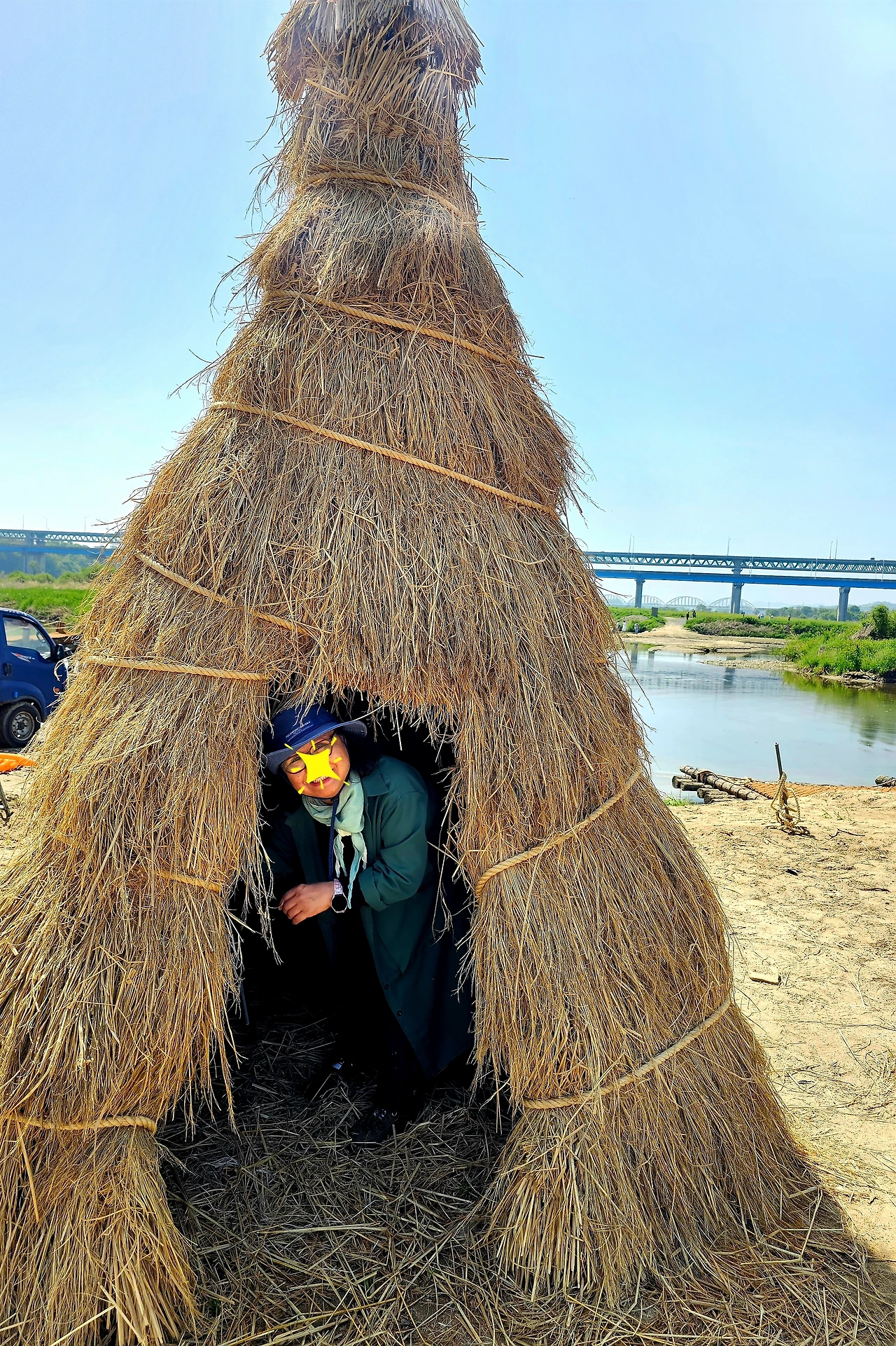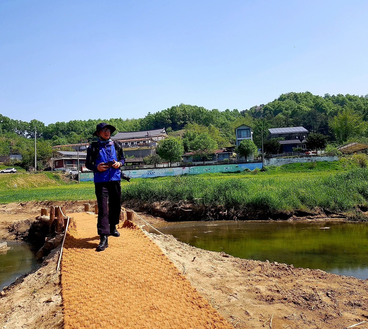 나루터가 제 몫을 못하니 이리 작은 물줄기로 약해졌구나 라며 나룻배를 타보려는데 짝꿍 굳이 말린다 모형일 뿐이라고ㅡㅡㅎ