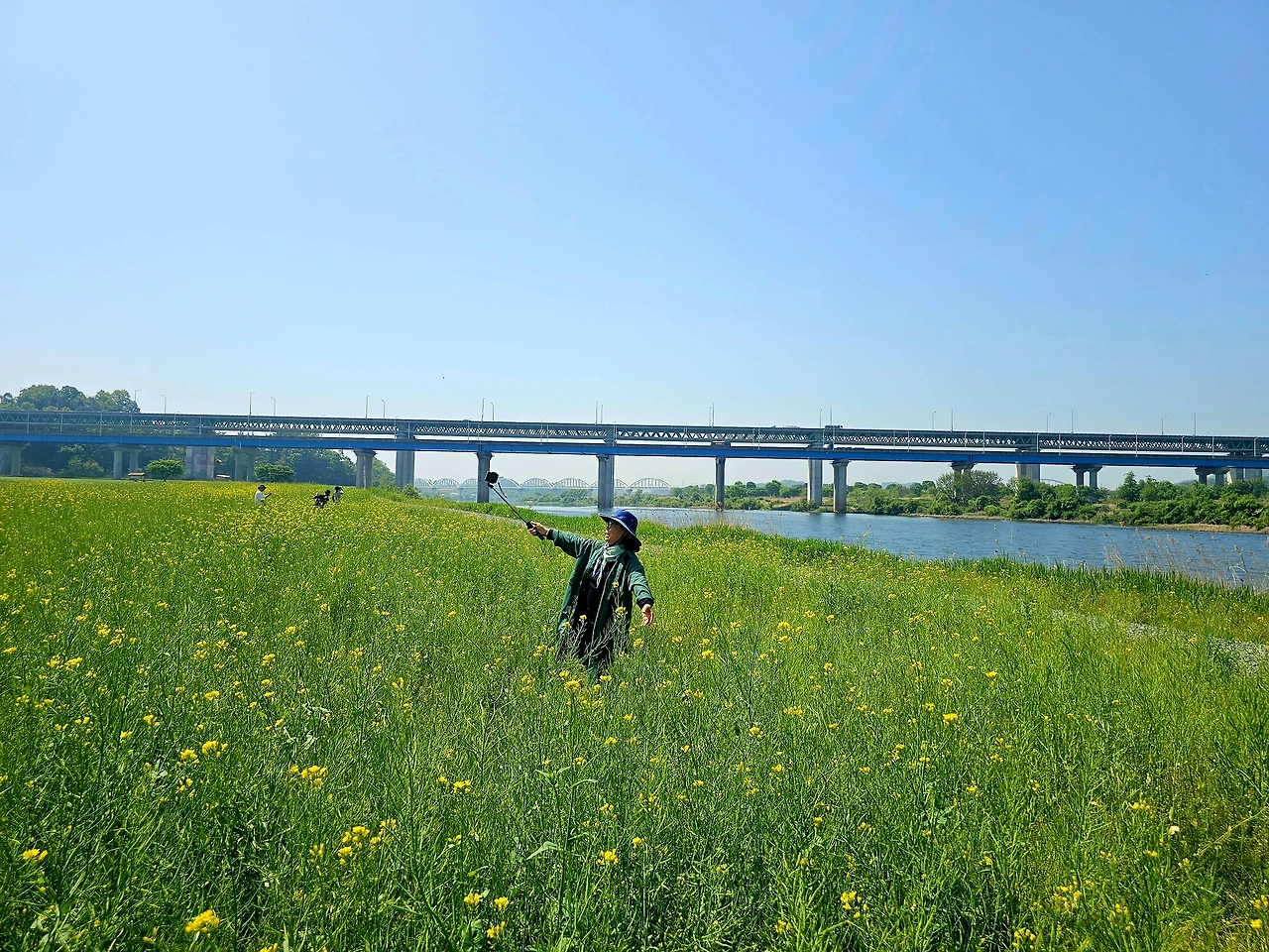 옆으로 남한강이 힘차게 흐르고 저 앞으로 목계대교가 시원하게 뻗어있었다