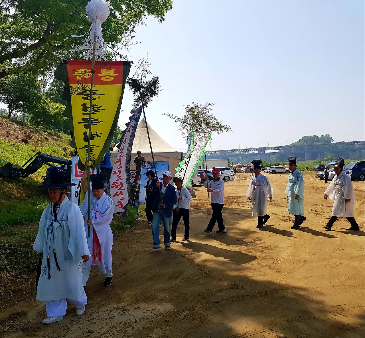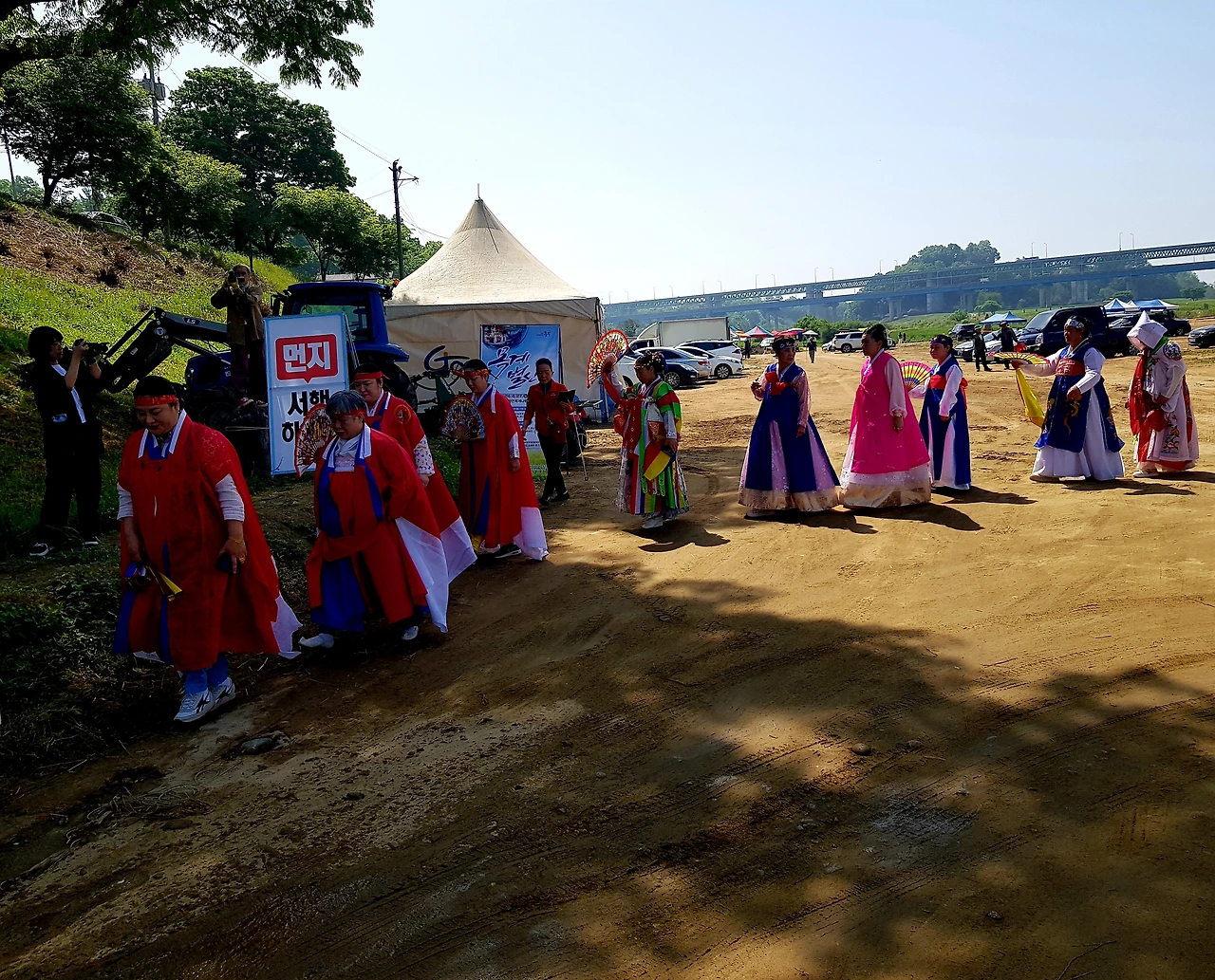 풍악을 울리며 한 무리의 사람들이 줄을 지어 어디론가 향하고 우리는 주차장에 주차했다