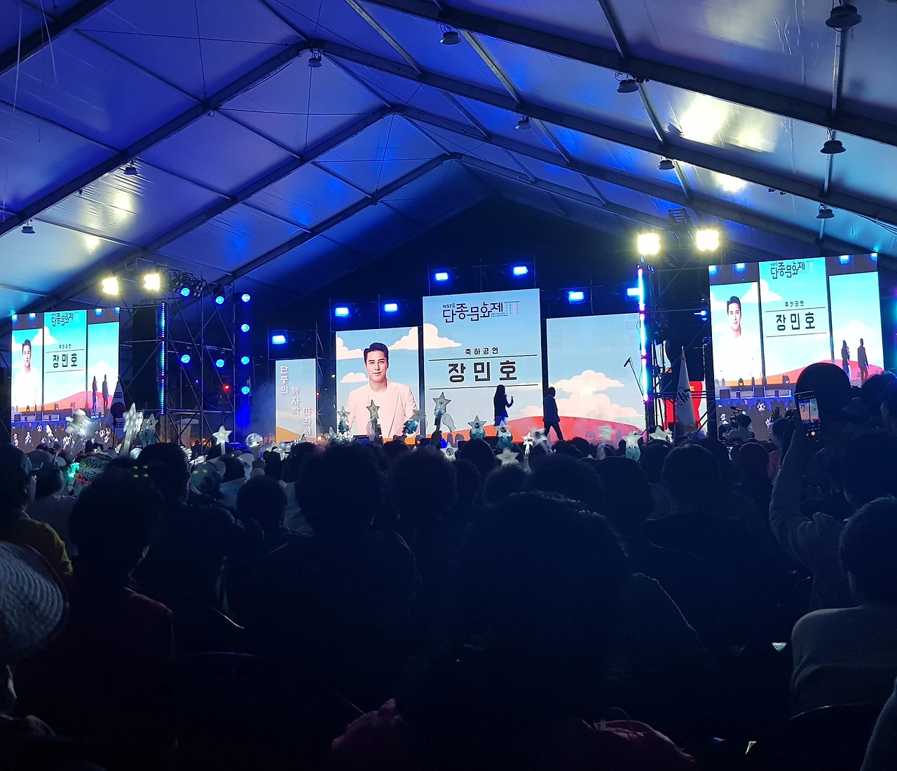 도지사 군수등도 장민호 팬클럽을 의식하는 인사를 잊지 않았는데 심지어 국회의원은 늘 비가 왔었는데 올해는 장민호가 오기 때문에 날씨도 맑단다ㅡㅎ