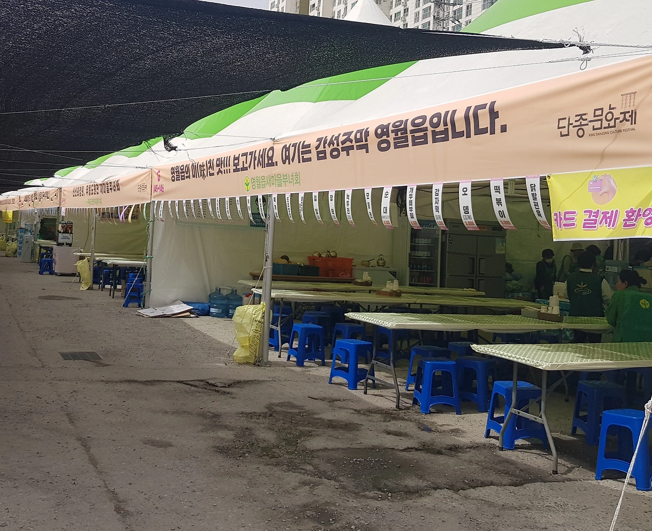 면마다 새마을 부녀회에서 부스를 열고 있었는데 행여라도 바가지를 막겠다는 정책? 인 듯 입구에 각 면마다의 음식 메뉴와 값을 공개해 놓아 그곳에서 찾아볼 수 있었다