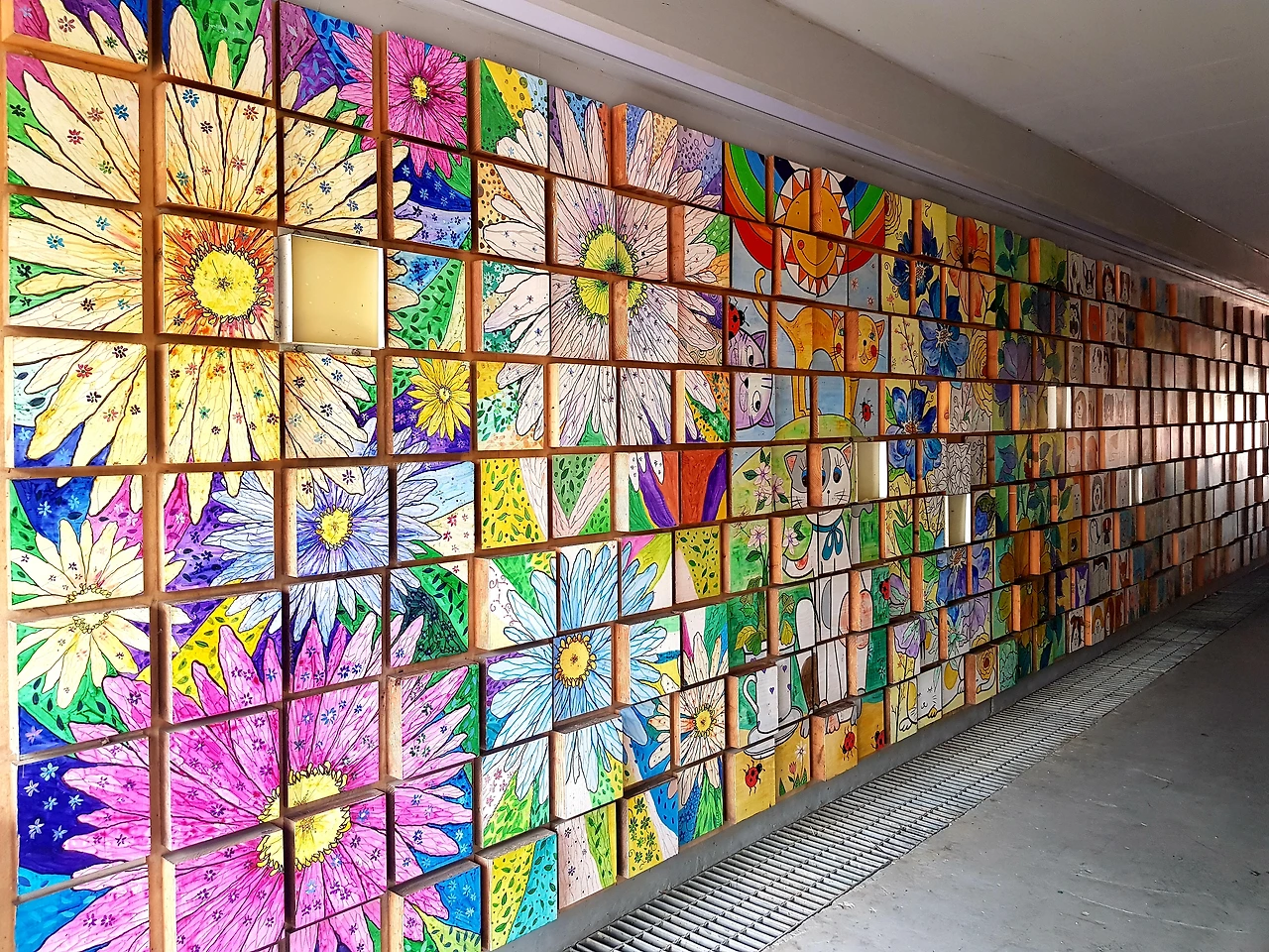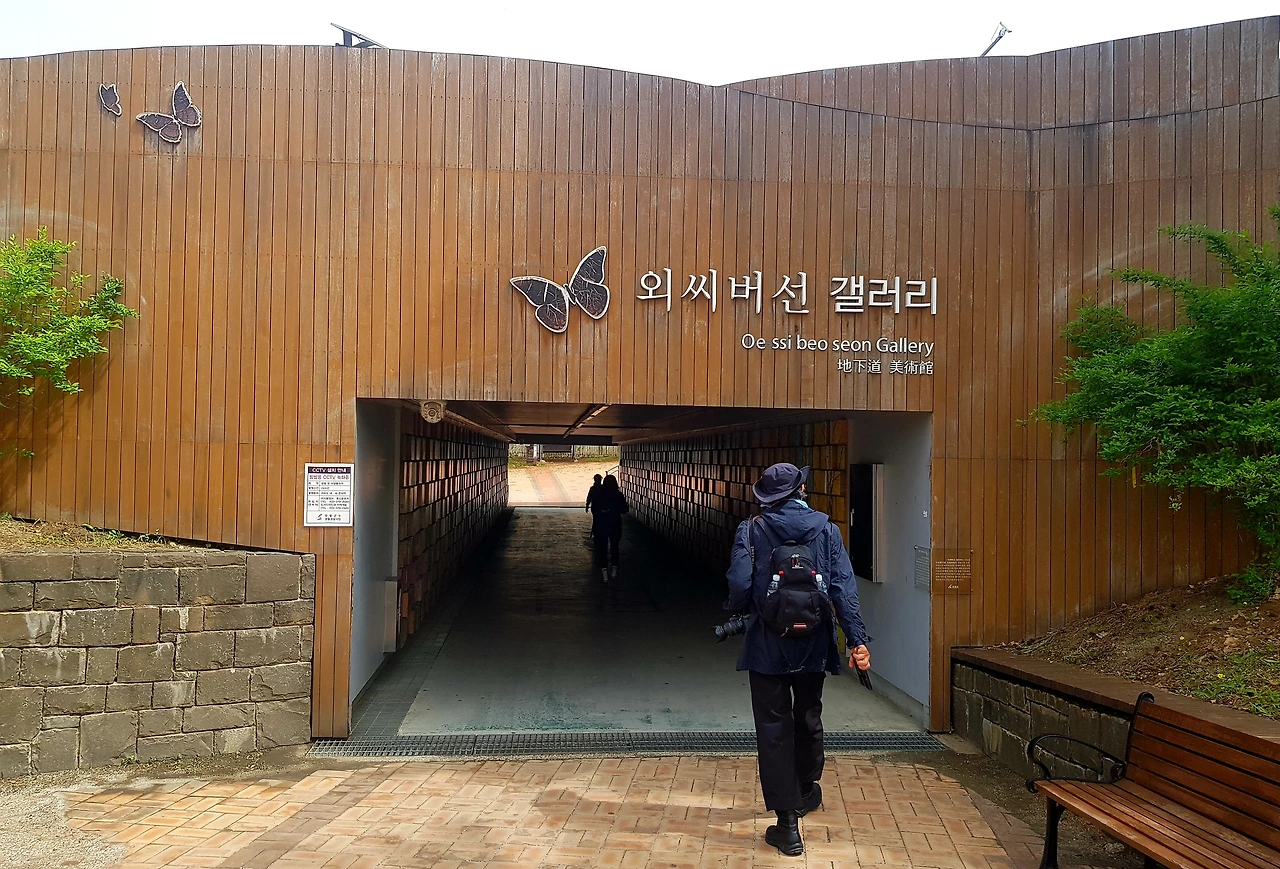 계단을 올라 길을 건너니 지하도를 이용한 외씨버선 갤러리를 통과하는데 재미있는 많은 그림이 작은 사이즈로 제작되어 양 벽면을 가득 메우고 있었다
