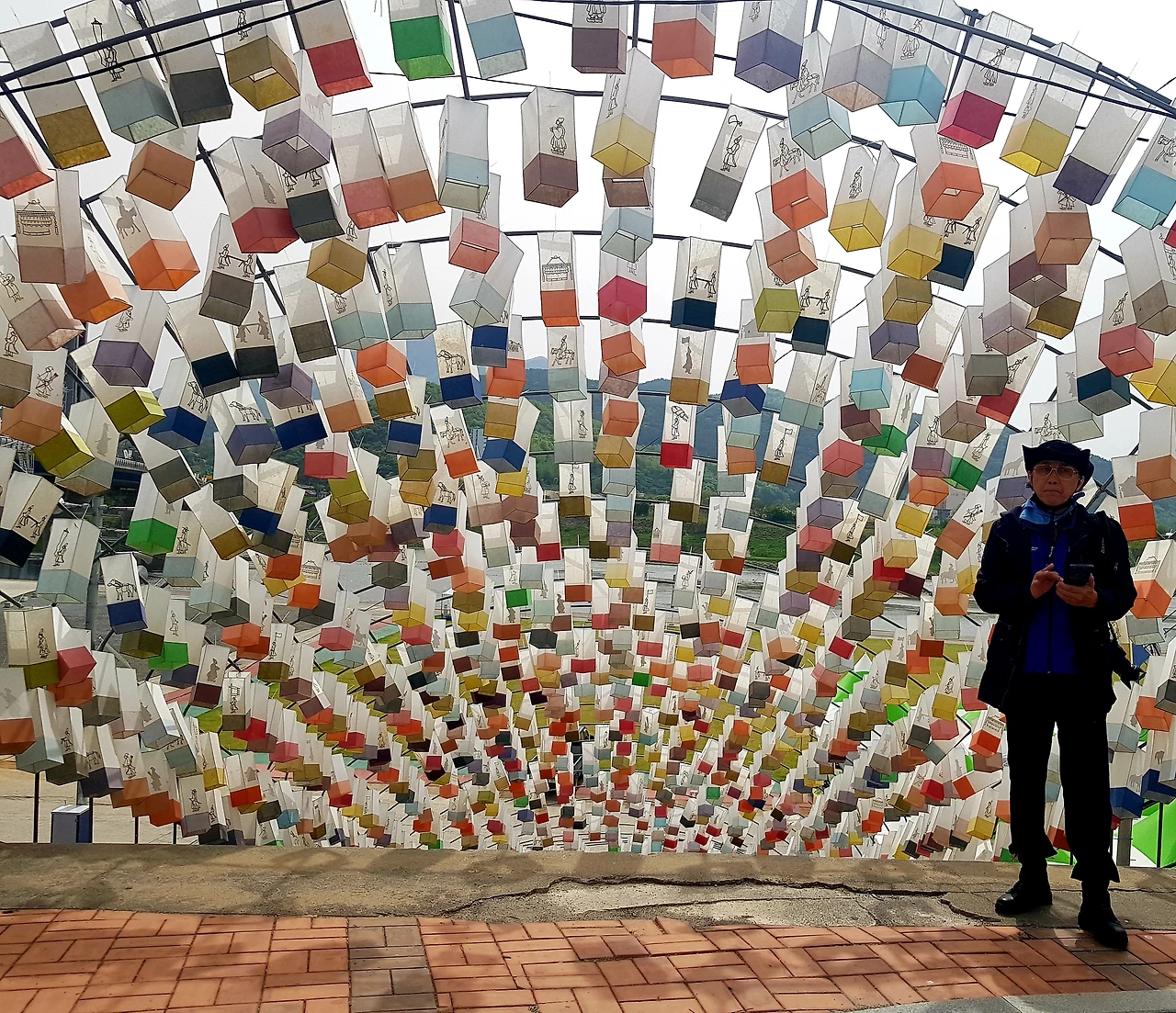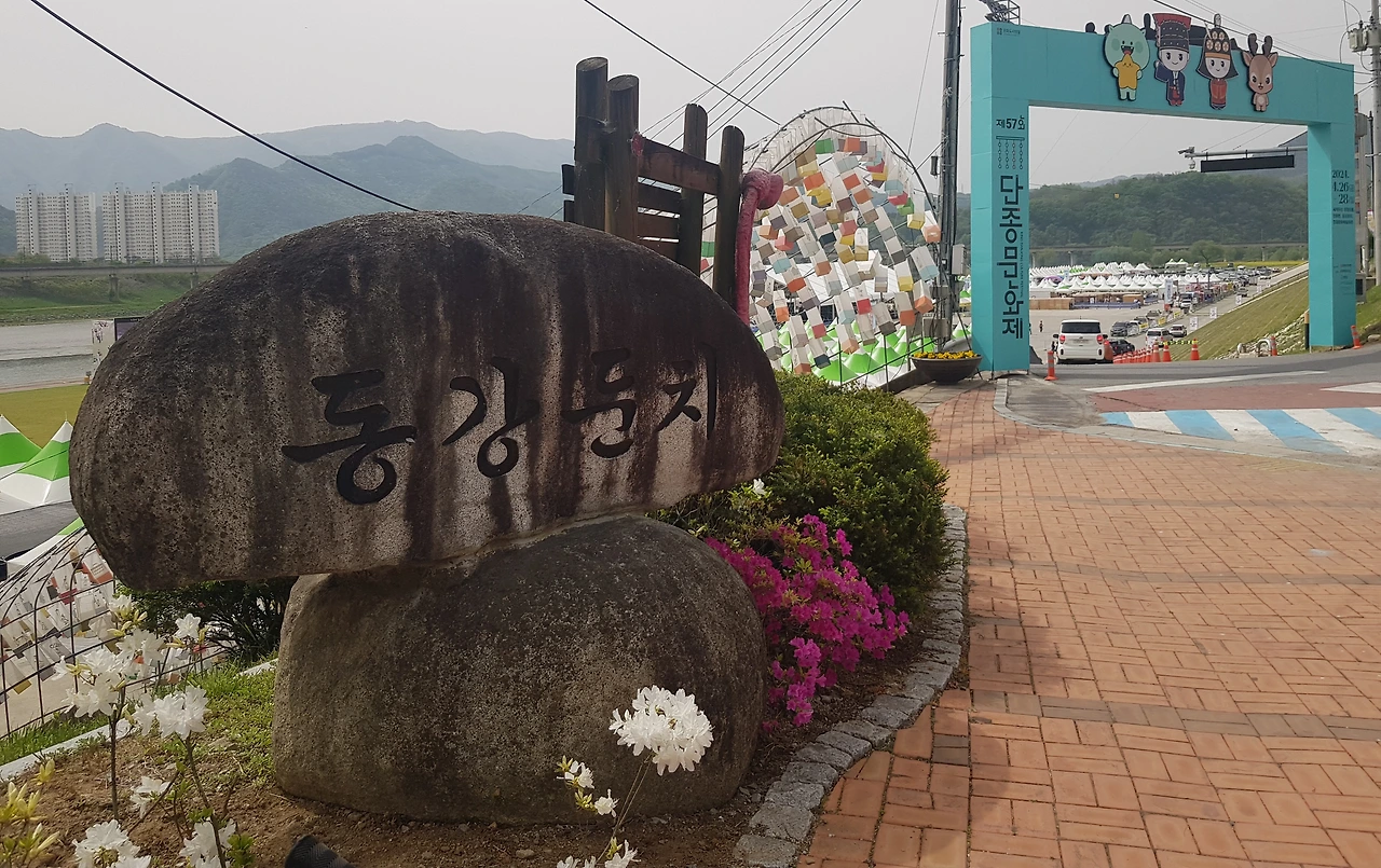 동강 둔치의 행사장 계단을 오르는데 온통 오색등이 걸려있어 다른 세상으로 오르는 듯