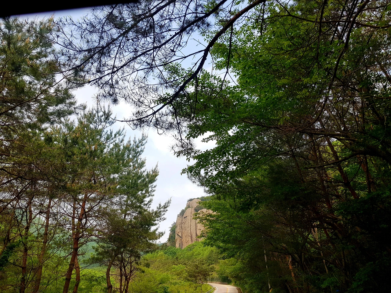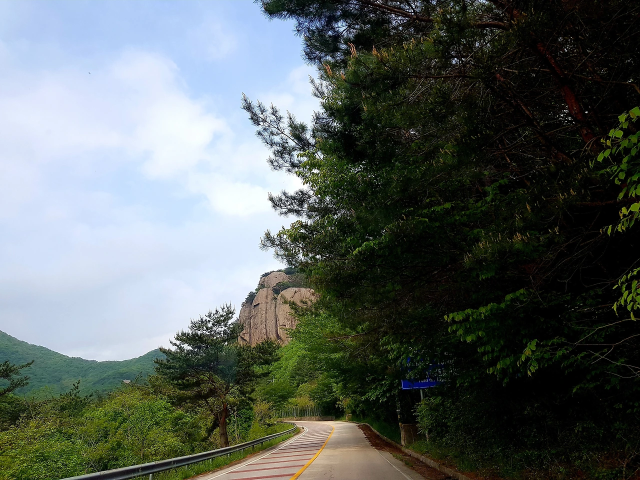 푸르름이 싱그러운 국립공원길이 한적하여 여유롭게 차가 달린다