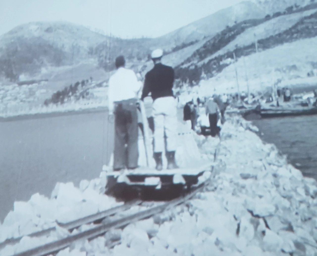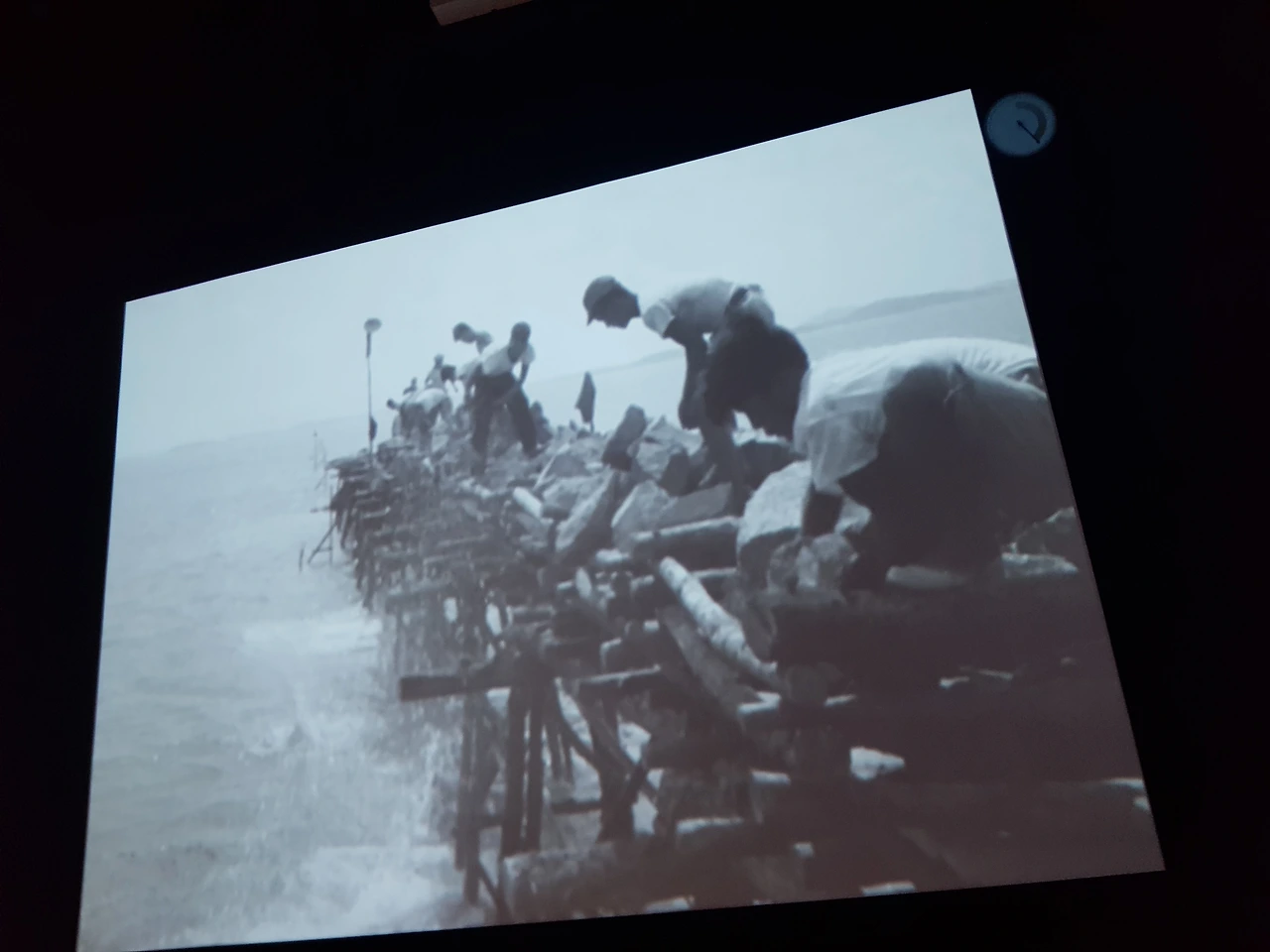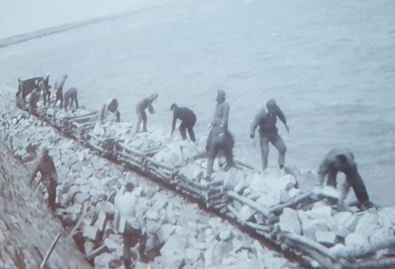 하지만 이제 그 마음을 쓰다듬고 새만금 물막이 공사에서 일하는 모습과 마지막 물막이 공사에서 물살이 세어 공사가 진척이 안되어 어려움이 있었고 그 일을 해냈을 때 환호하는 사진을