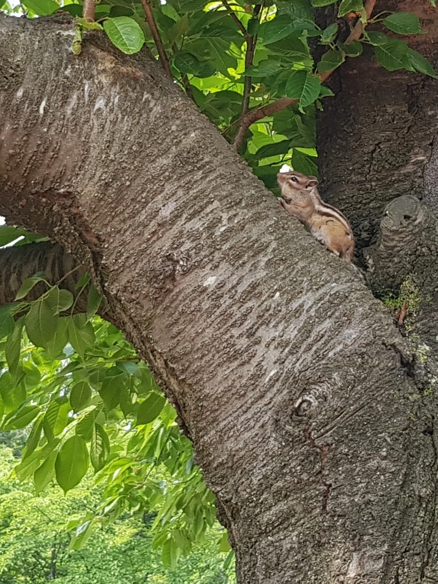 발걸음 옮기는 소리에 쪼르르 나무숲으로.