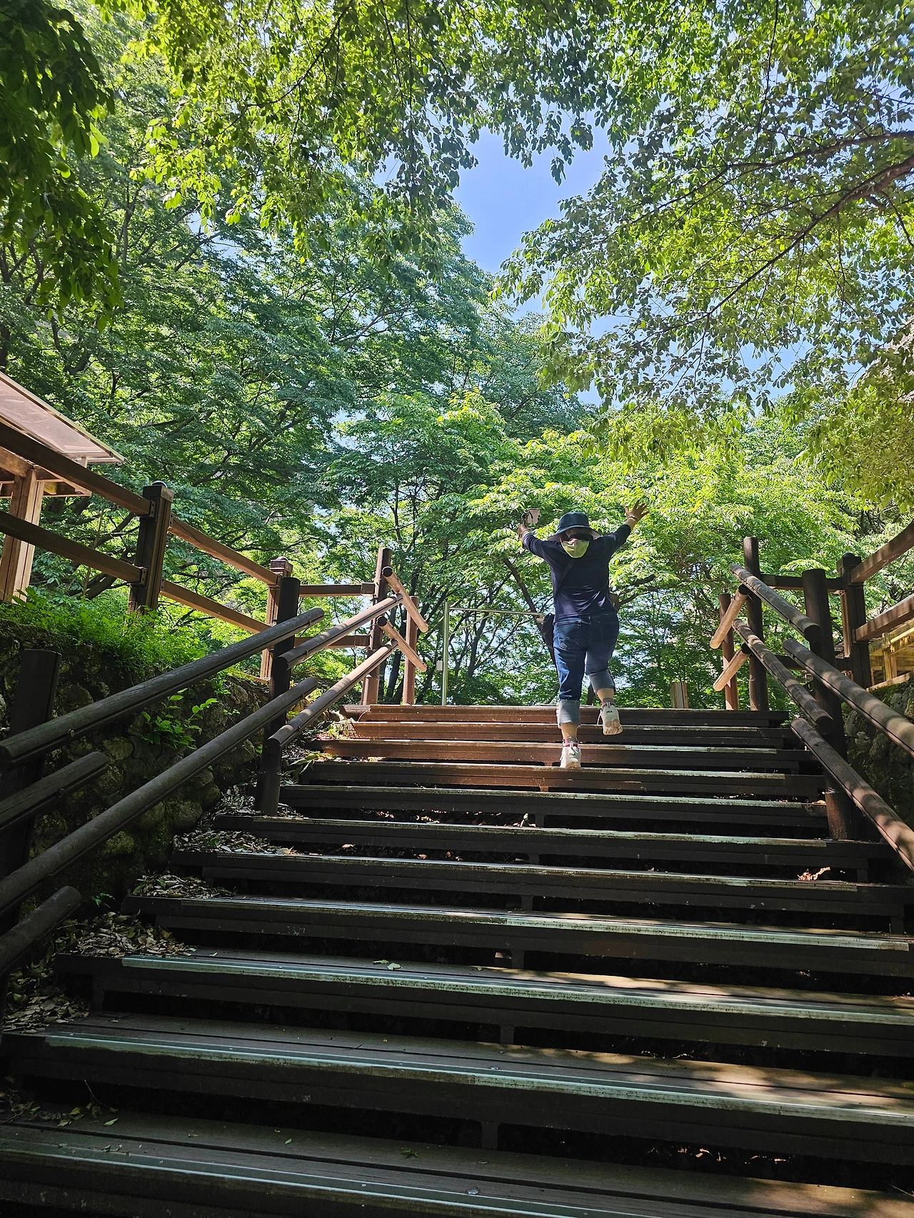중간쯤에 쉬어가라는 벤치가 있는 쉼터가 있어 지친 다리를 쉬게 하려 잠시 쉬었다