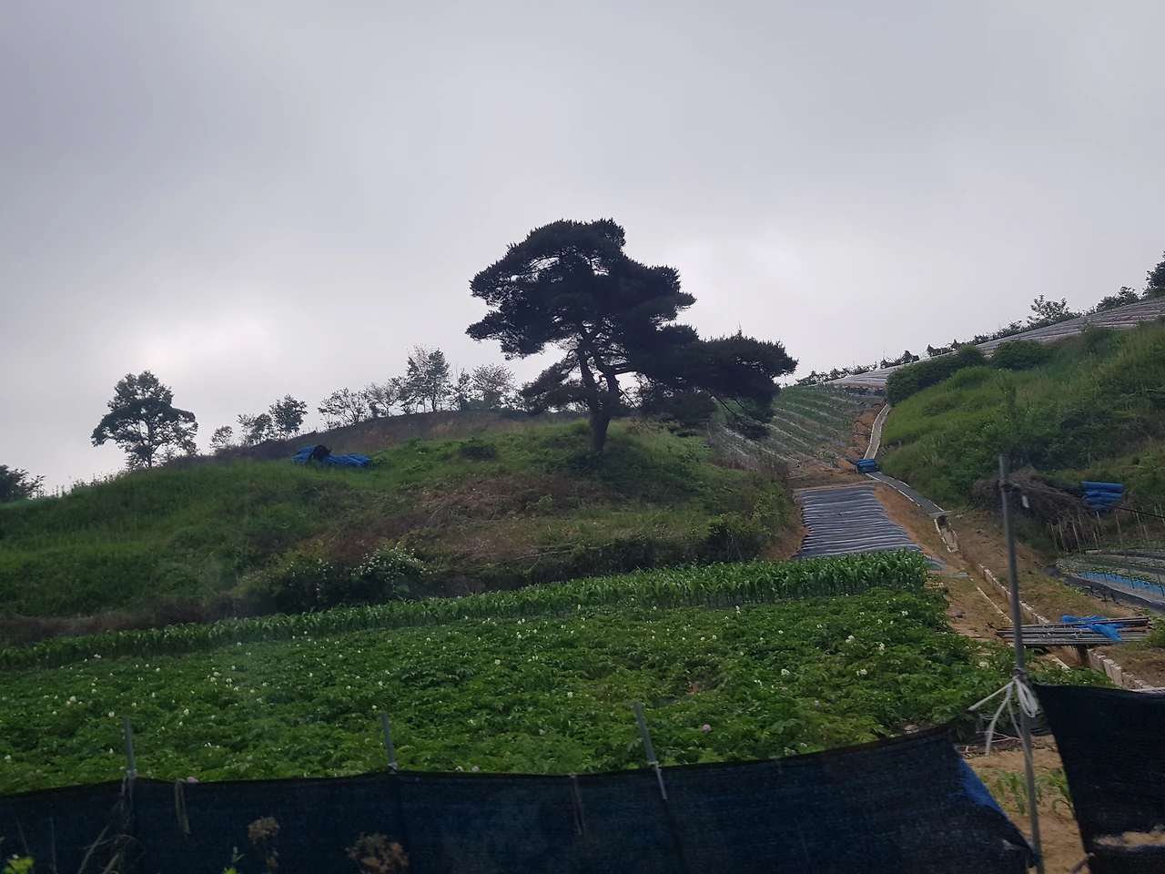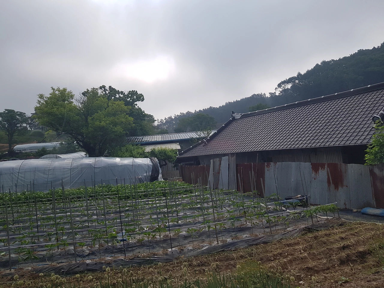 밭에는 고추가 자라고 있고 저 비닐하우스 안에는 뭐가 자라고 있을까