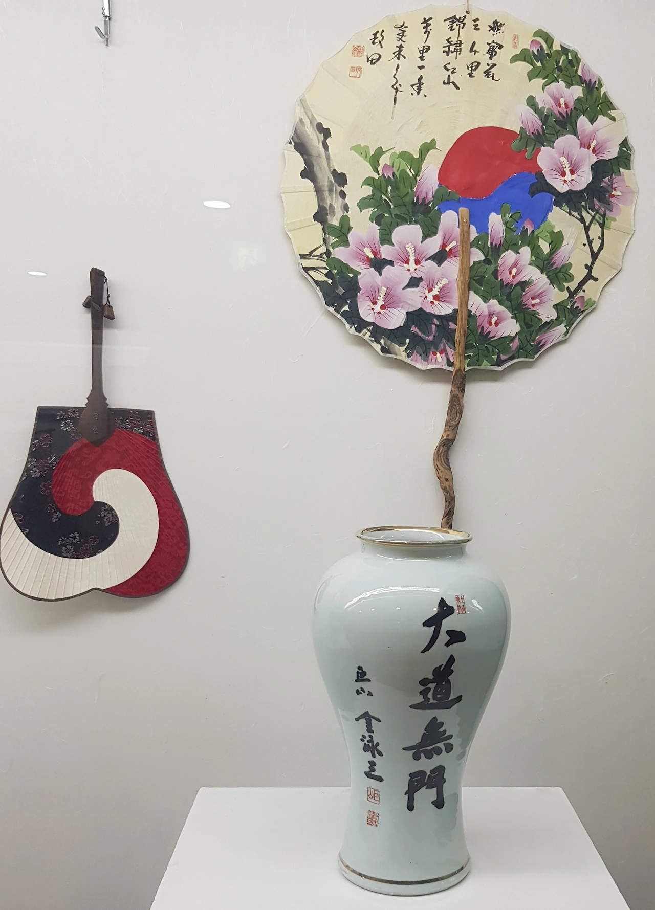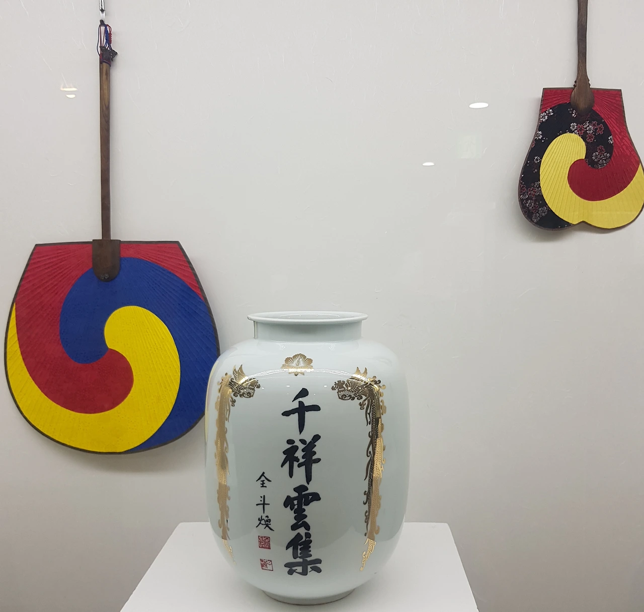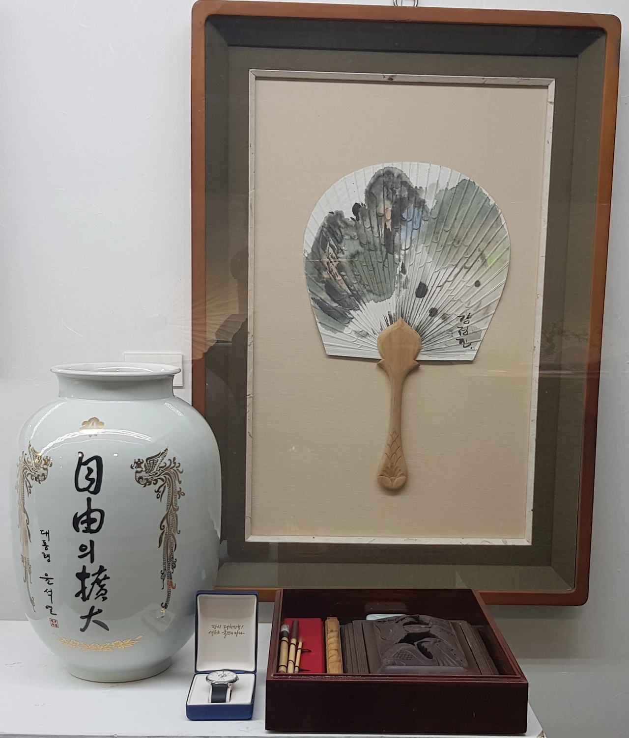 특이한 것은 현직, 전직 역대 대통령들의 이름이 세계진 도자기와 부채의 조화가 이루어져 전시되어 있었다