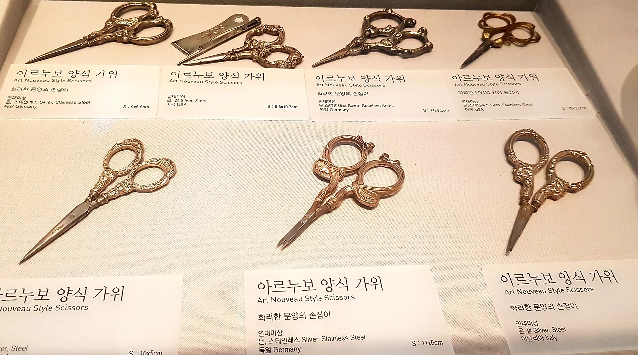 박물관을 돌아보며 아름답고 귀한 가위들을 만나 보았는데 서양의 다양한 사용에 따른 가위와 왕관 모양을 한 한나의 아름다운 왕관 가위를 보았다