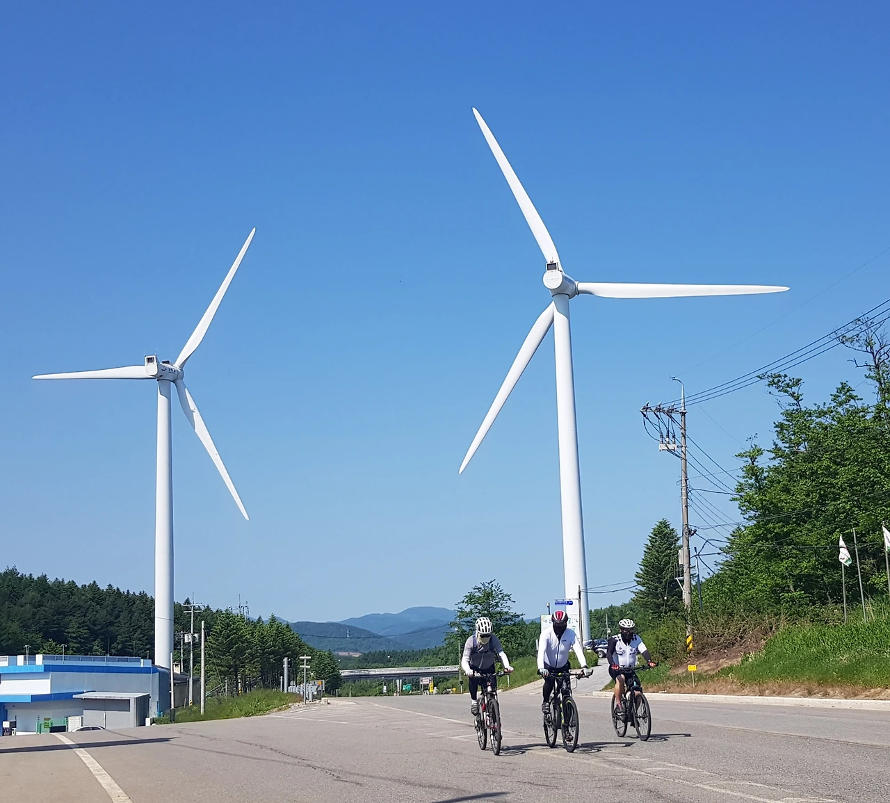 몇 분이 자전거로 대관령고개를 넘고 있는 모습이 들어왔다