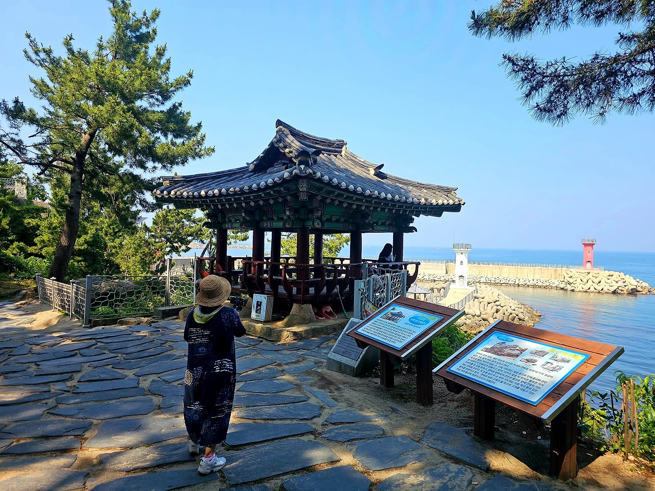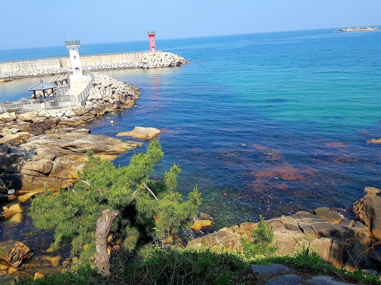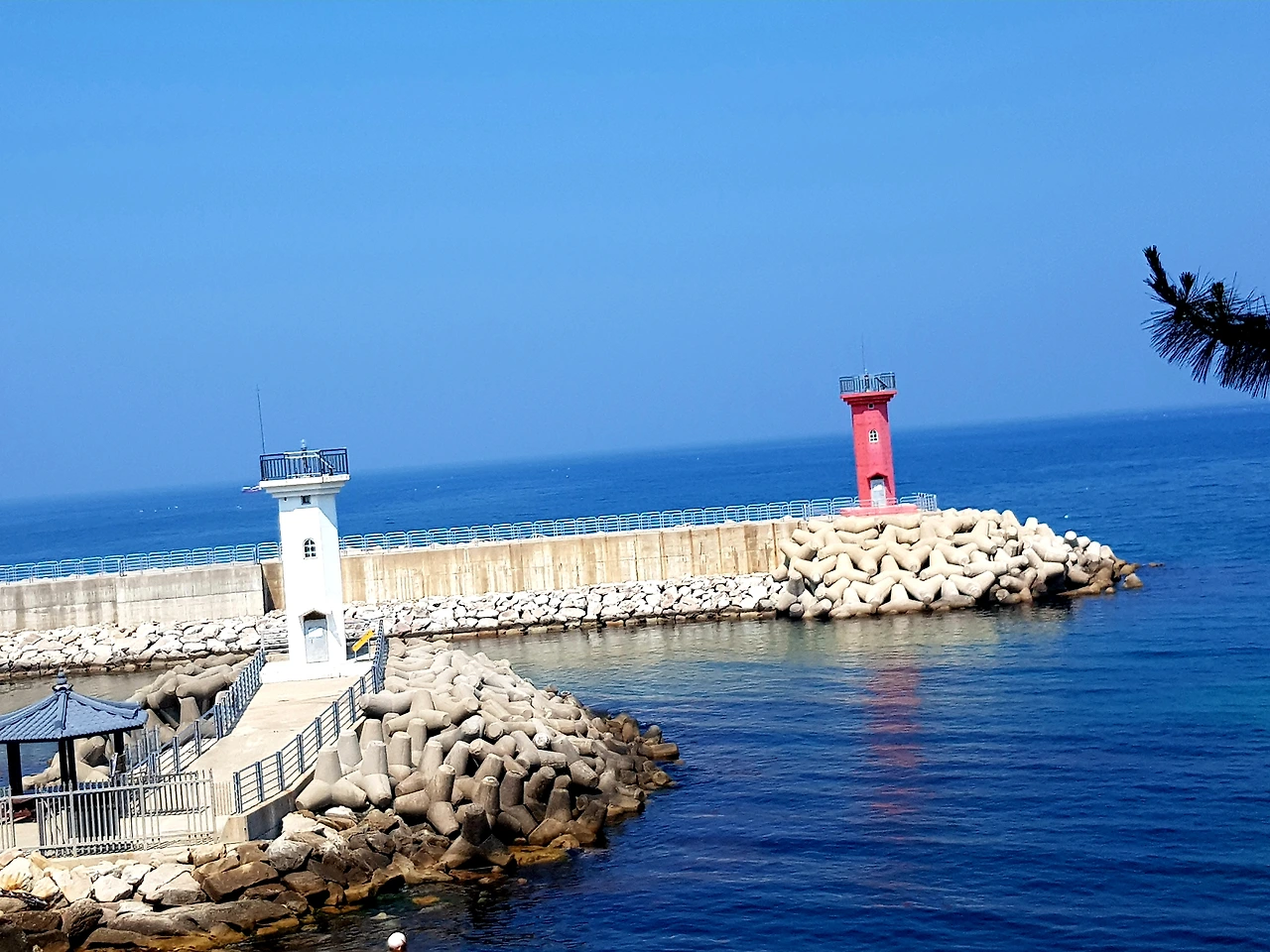 앞쪽으로 보이는 하얀 등대와 빨간 등대가 짙푸른 바닷빛에 어우러져 너무도 아름다운