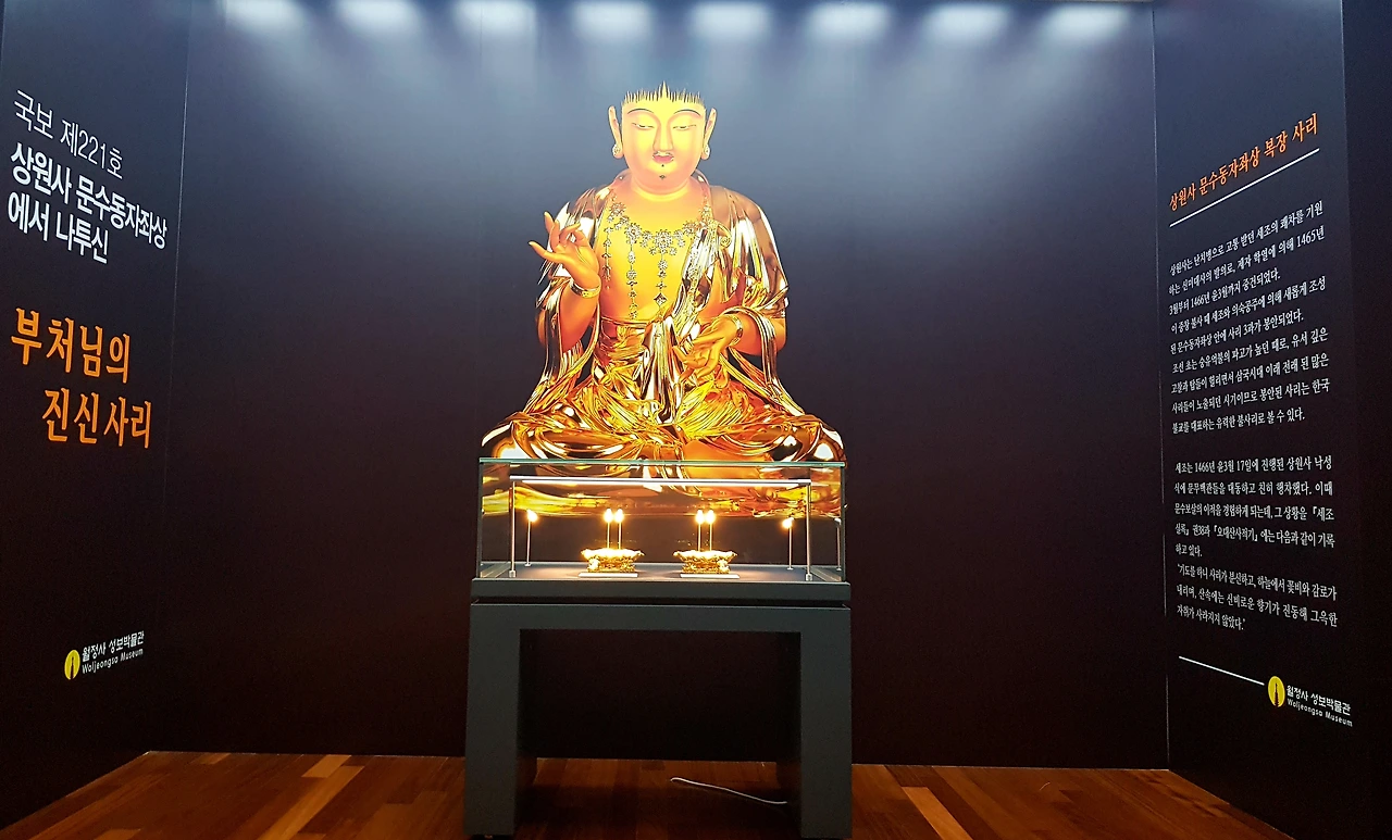 상원사 문수동자 좌상에서 나투신 부처님 진신사리