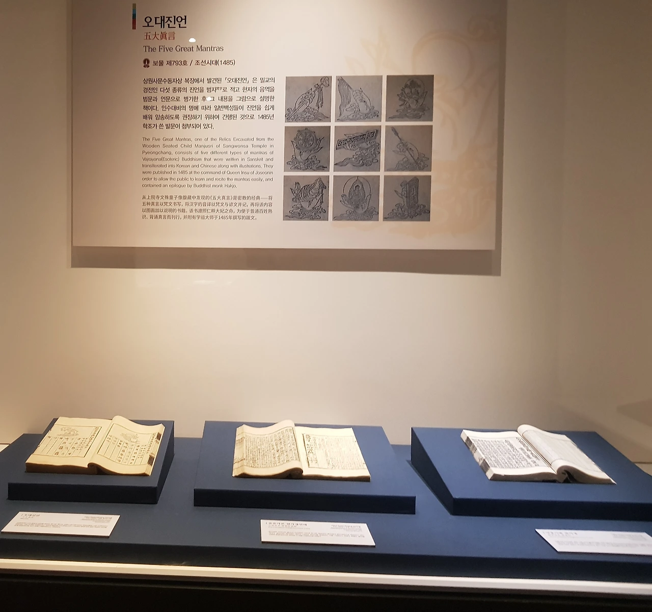 특히 이번 성보박물관 전시실을 돌아보다 만난 문수동자상에서 나온 부처님 진신사리와 문수보살 저고리 또 그 속에 있던 만백성이 어렵지 않게 불교를 받아들일 수 있도록 배려한 오대진언책은 내게 놀라움과 진한 감동으로 담겨왔다