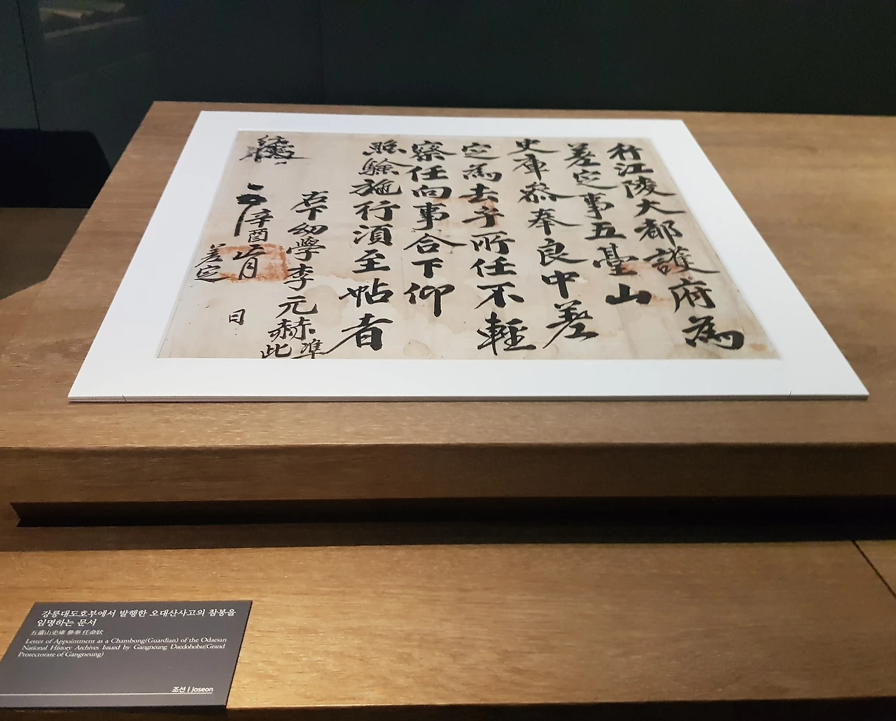 강릉대도호부에서 오대산 사고 참봉을 임명하는 문서