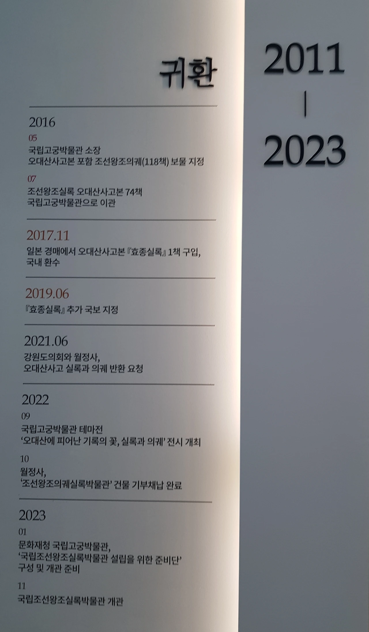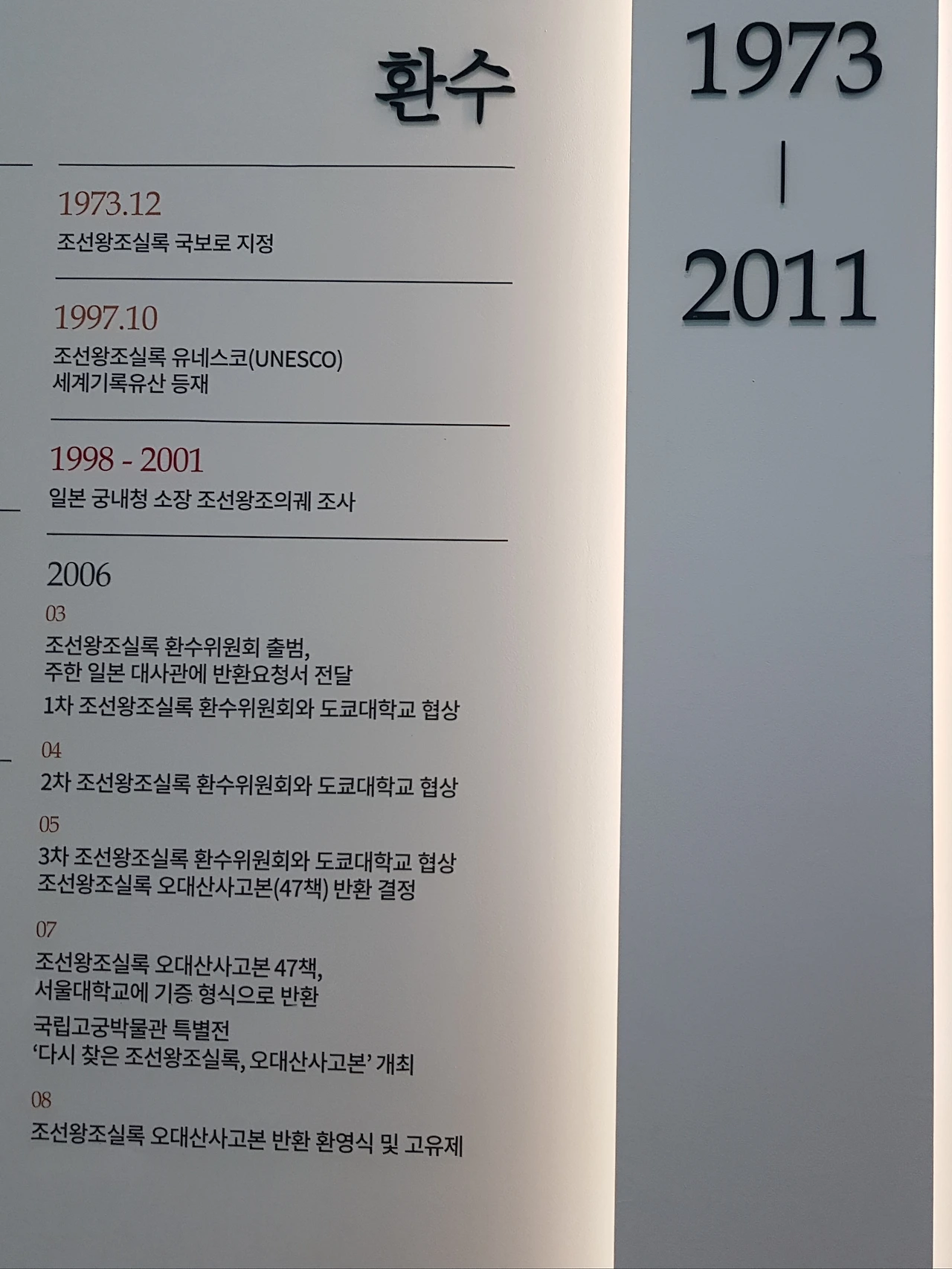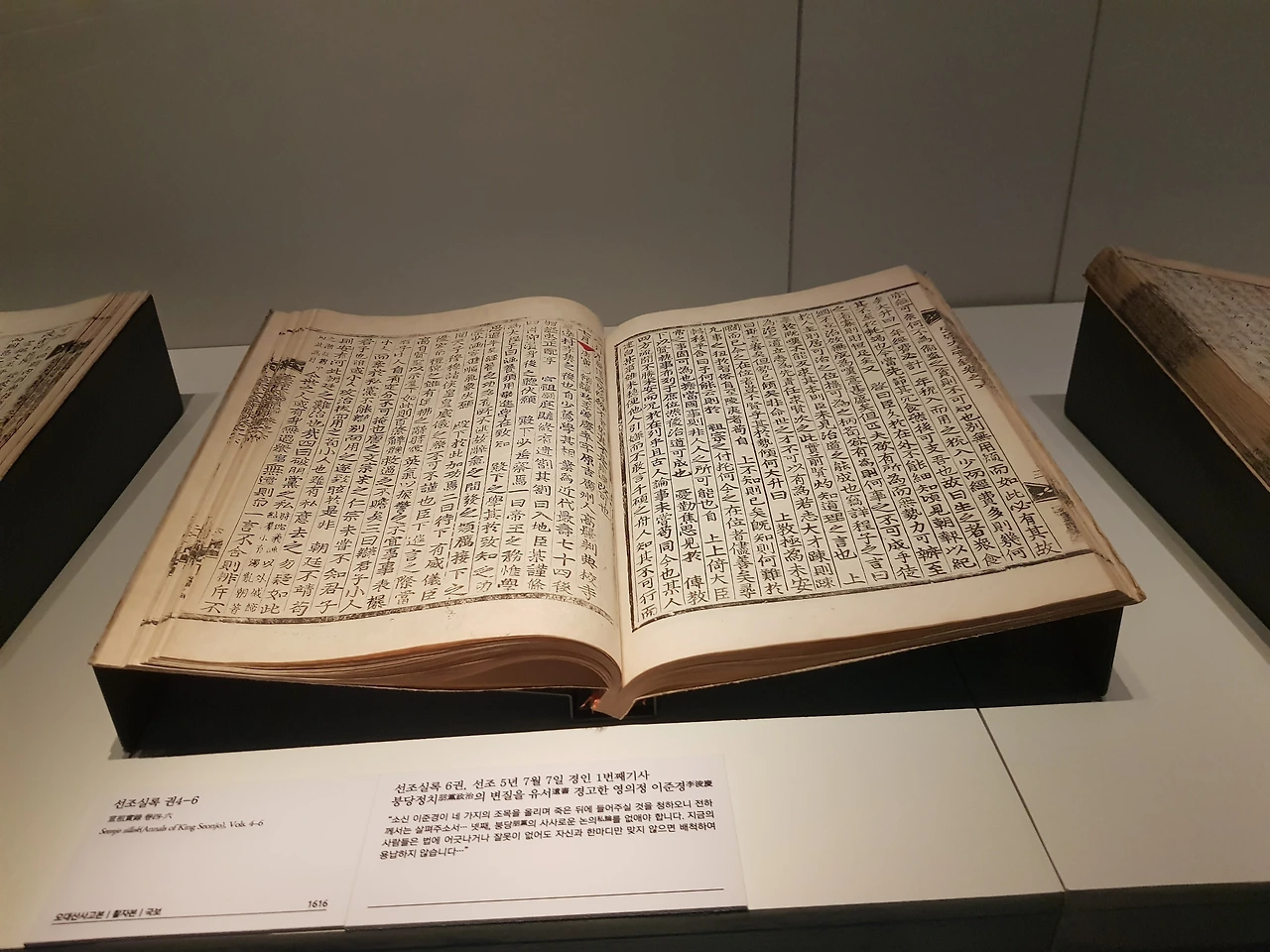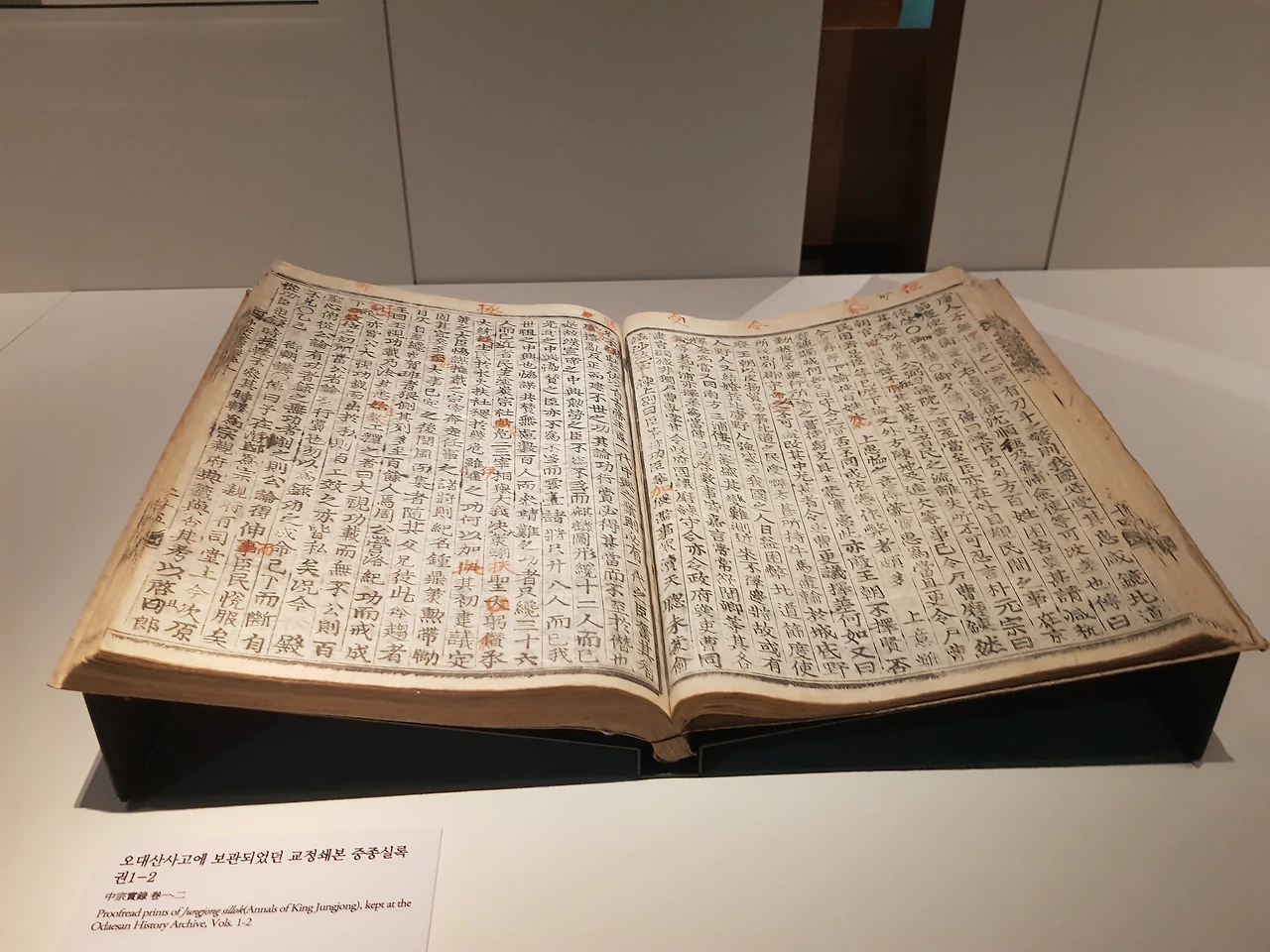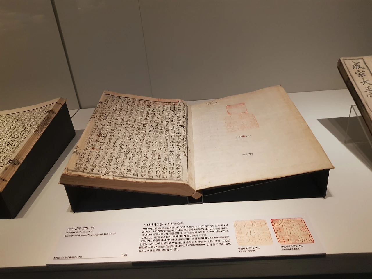 전시된 조선왕조실록과 그외 역사적인 귀중품을 돌아보며