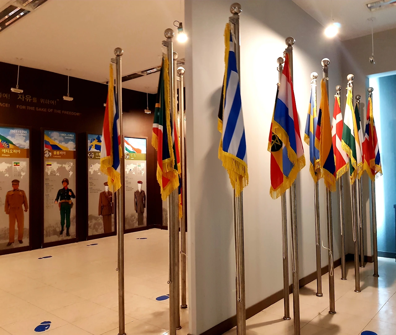 특별히 병력 지원국의 국기가 줄지어 서있고 그 앞에서 감사합니다라고 인사를 했다