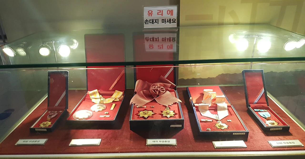 용사들에게 수여했던 훈장과 계급장 또 그때 사용했던 총도 전시되어 있었다