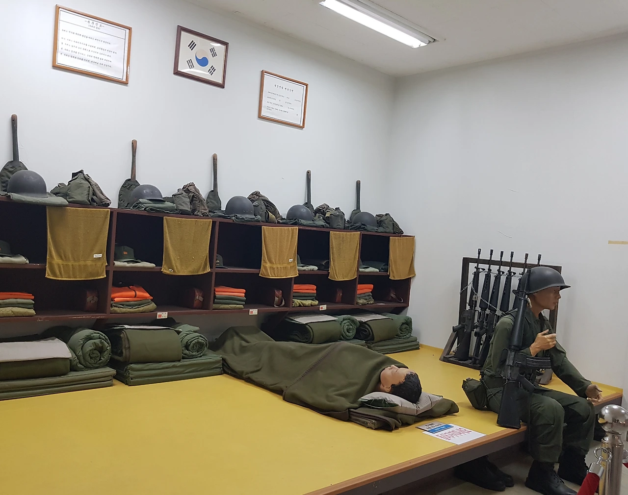 또 바로 옆에는 현재의 달라진 모습의 병영의 모습이 있어 개인주의를 중시하는 세대를 배려한 홀로 사용하는 침대를 보며 병영의 변화도 바로 비교되었다