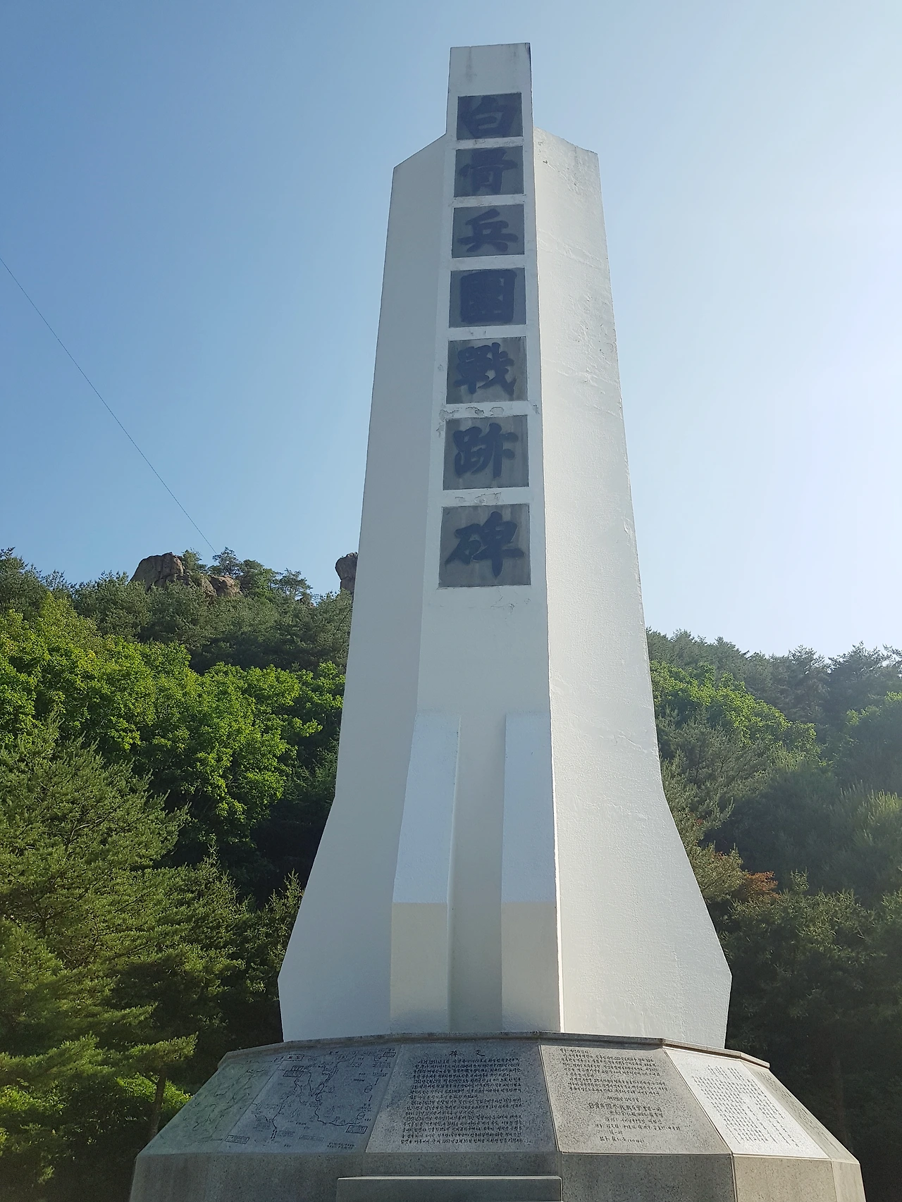 엄숙한 마음 정리 후 한발 한발 높은 계단을 올라 전적비 앞에 서서 나라를 지키기 위해 산화해 간 젊음들에게 고개를 숙였다