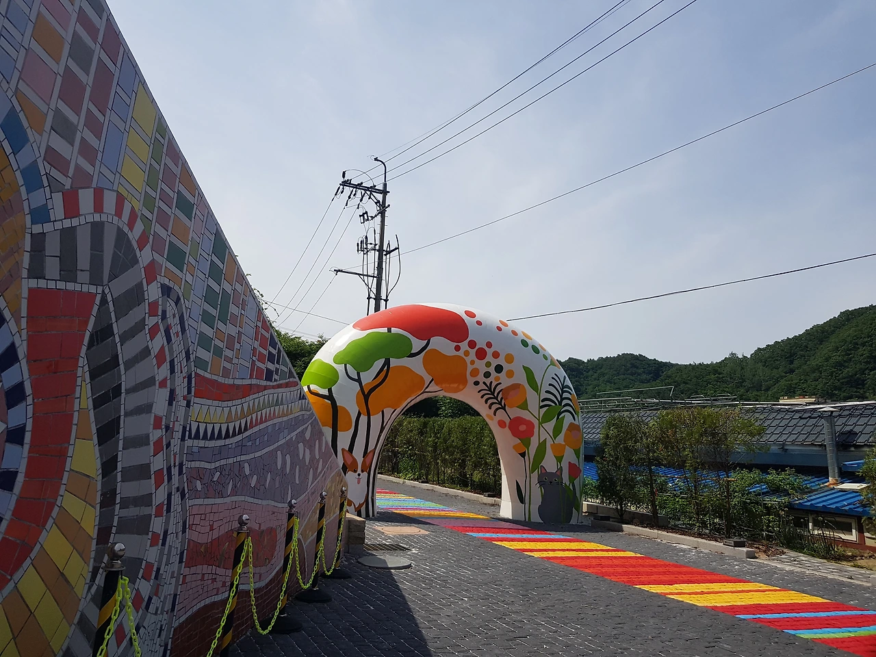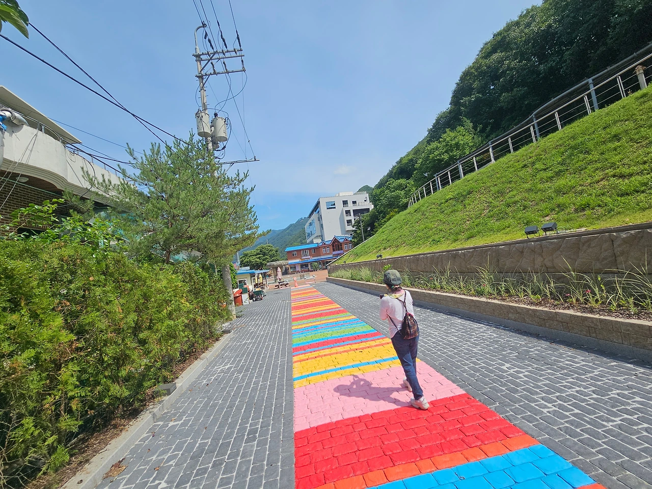 그곳을 돌아보고 뒷문?으로 나오니 아이들의 놀이터가 알록달록 무지개로 꾸며 있었고 또 알록이 길이 걸어보라 한다