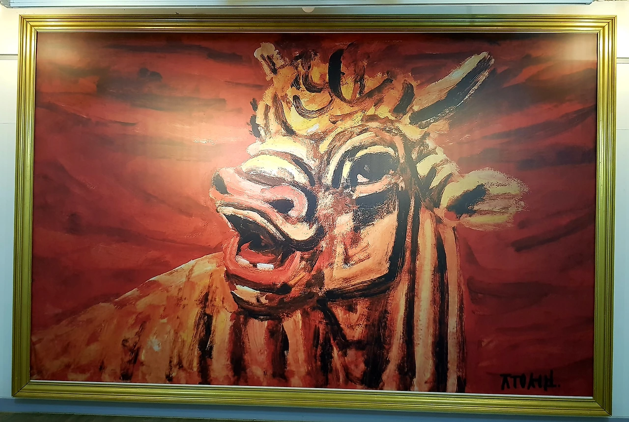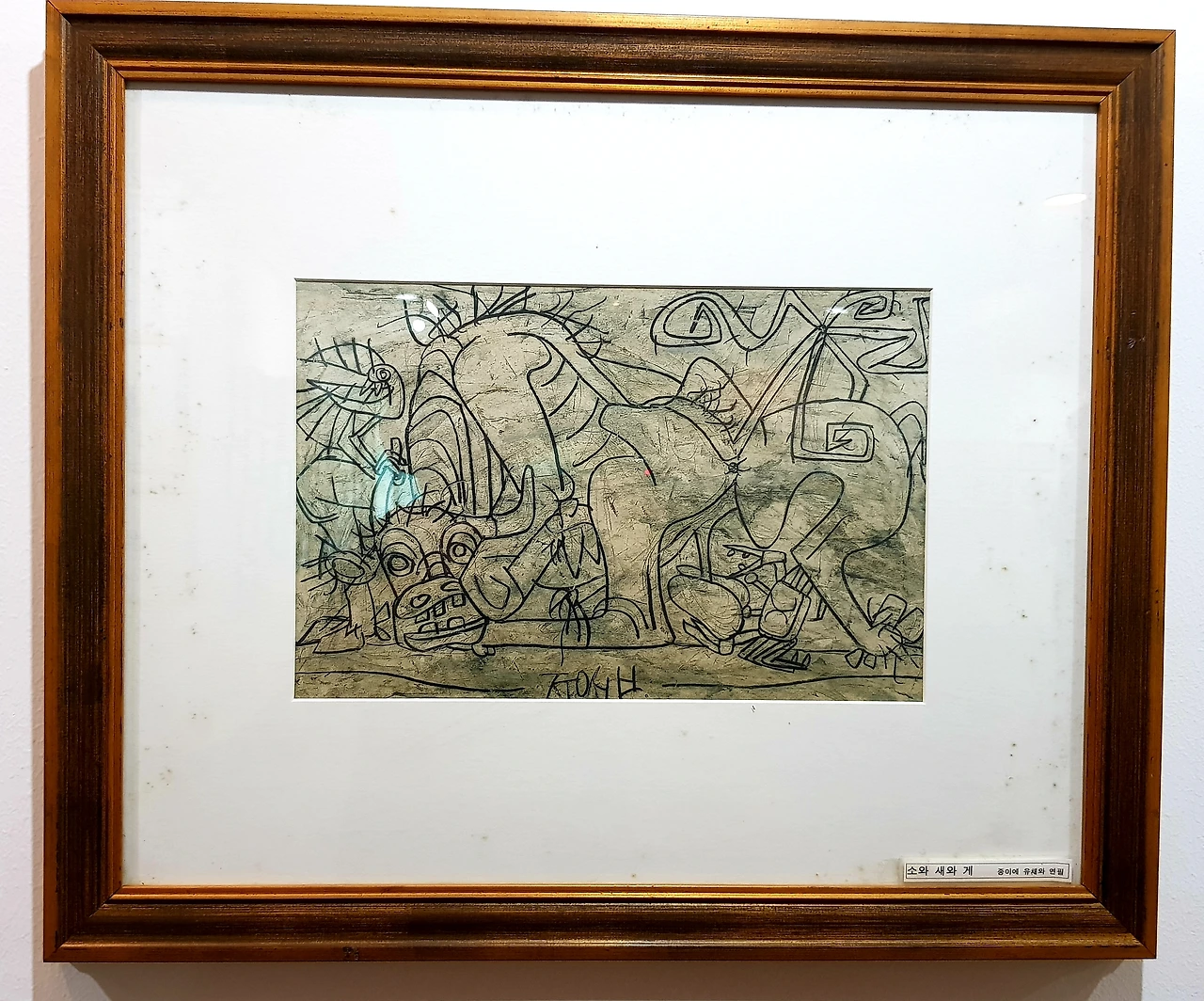 그의 소들은 강인한 남성성을 보여주는 듯했으며 평범한 그림들 같지만 자세히 들여다보니 억압하고 괴롭히고 또는 조롱당하는 그림들 앞에 서서 그 내용을 살펴보다가 훅 ㅡ들어온 느낌은? 우리 민족을 억압하고 있는 일본의 만행을