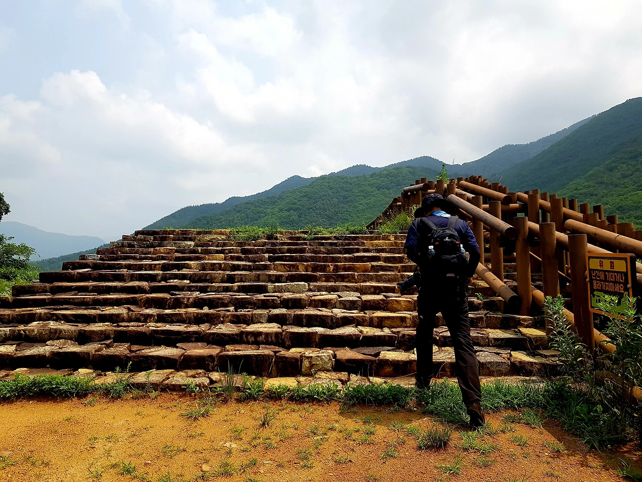 바윗돌로 쌓은 계단을 호기롭게 오른다