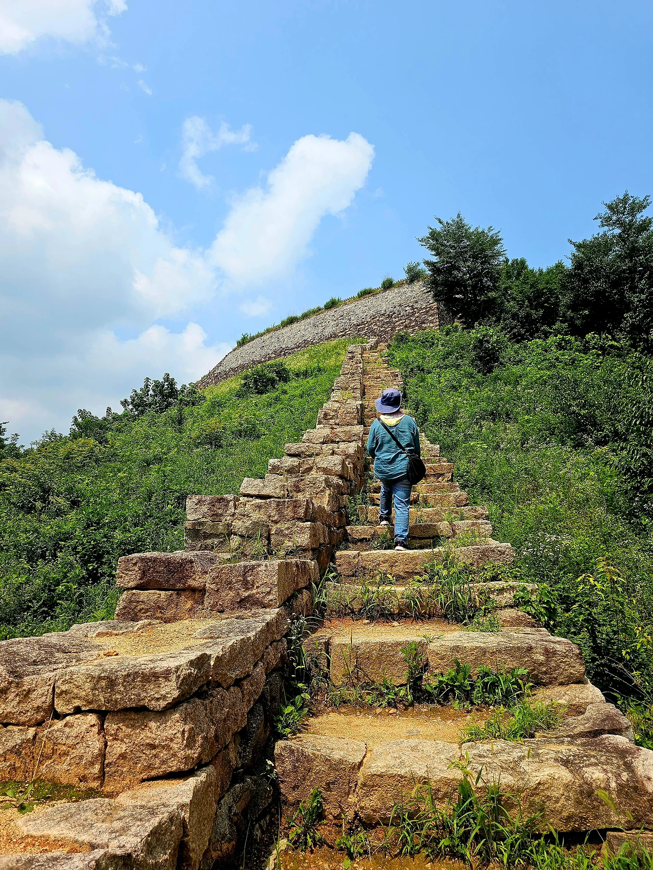 이제는 거의 기다시피 오른다 어지러움도 약간씩 찾아왔지만 물을 충분히 마셔가며 서로 오구오구 잘한다 격려하며 거칠고 가파른 그 계단을 오르니 성곽의 높이가 엄청나다