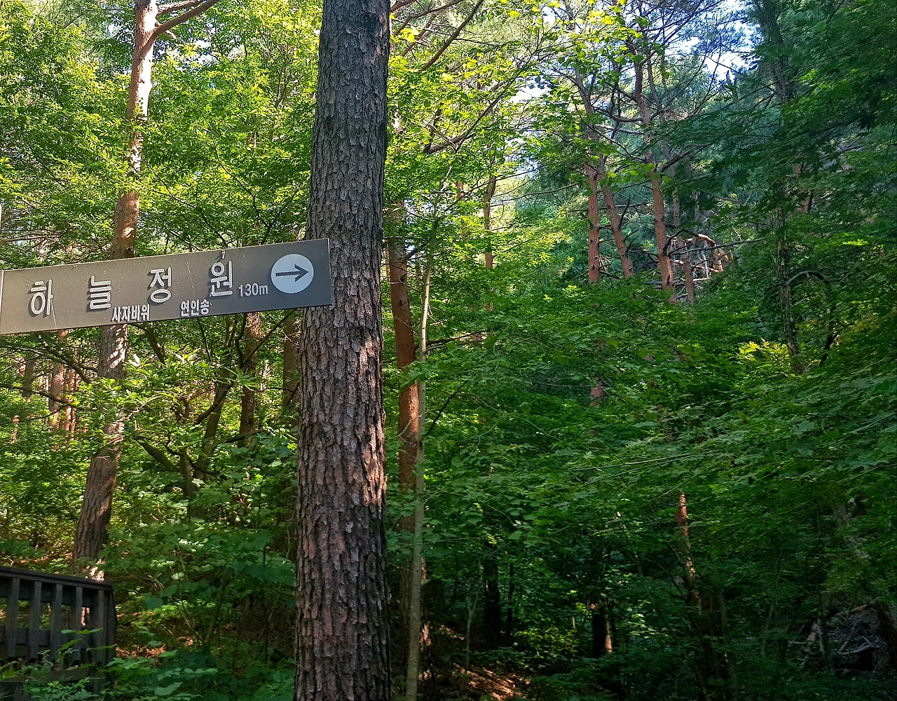 하늘 정원을 나와 숲길을 돌아 이곳저곳 쉬며 즐기다 보니 계곡이었다