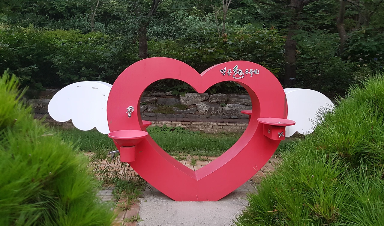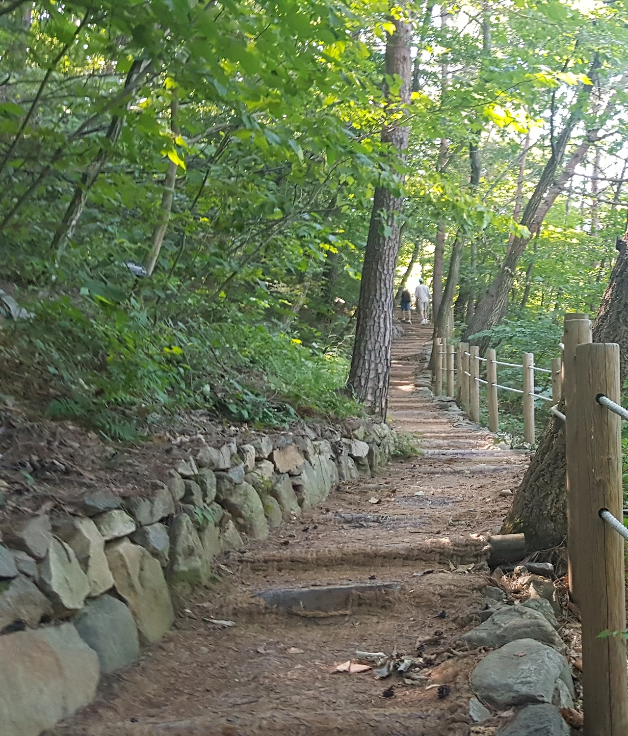 걷는 길 입구쯤에 도랑물이 흘러가게 만들어놓고 숲을 돌고 피로해진 몸을 쉬어가라는 듯 앉아서 발을 담글 수 있도록 설치가 되어 너무 멋진 선물 같았다