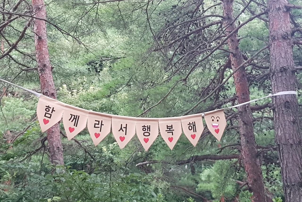 도랑물에 발을 담그고 세수도 하고 피로가 샥~~~~ 솔향 수목원의 멋진 선물이었다