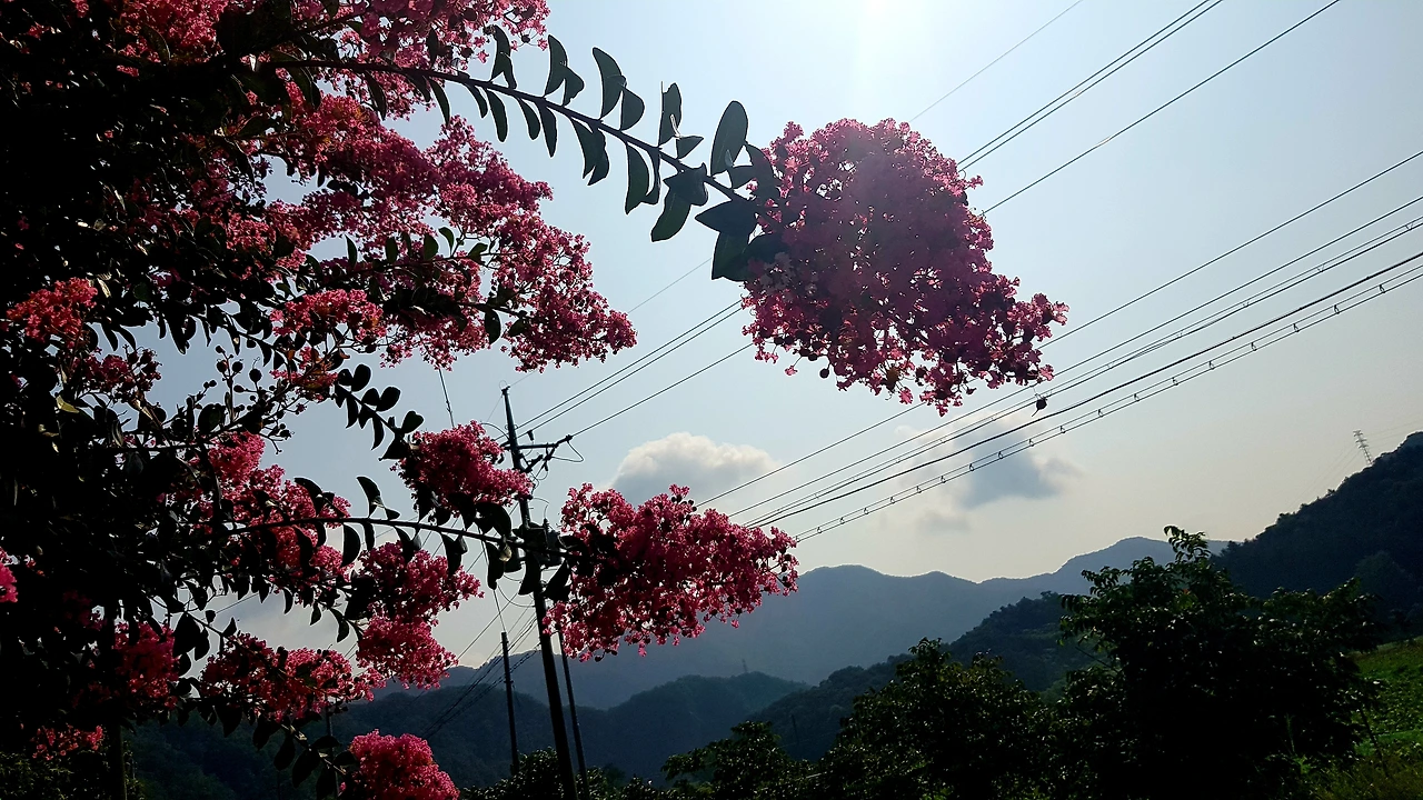 길가 폐가 앞에 주차를 하고 내리니 옆에 핑크빛 배롱나무 꽃이 활짝 웃으며 반긴다